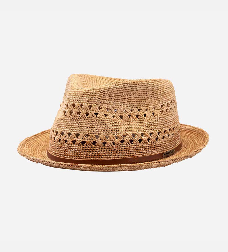 This stylish fedora from Mossant impresses with a refined woven pattern in 101% dyed wheat...