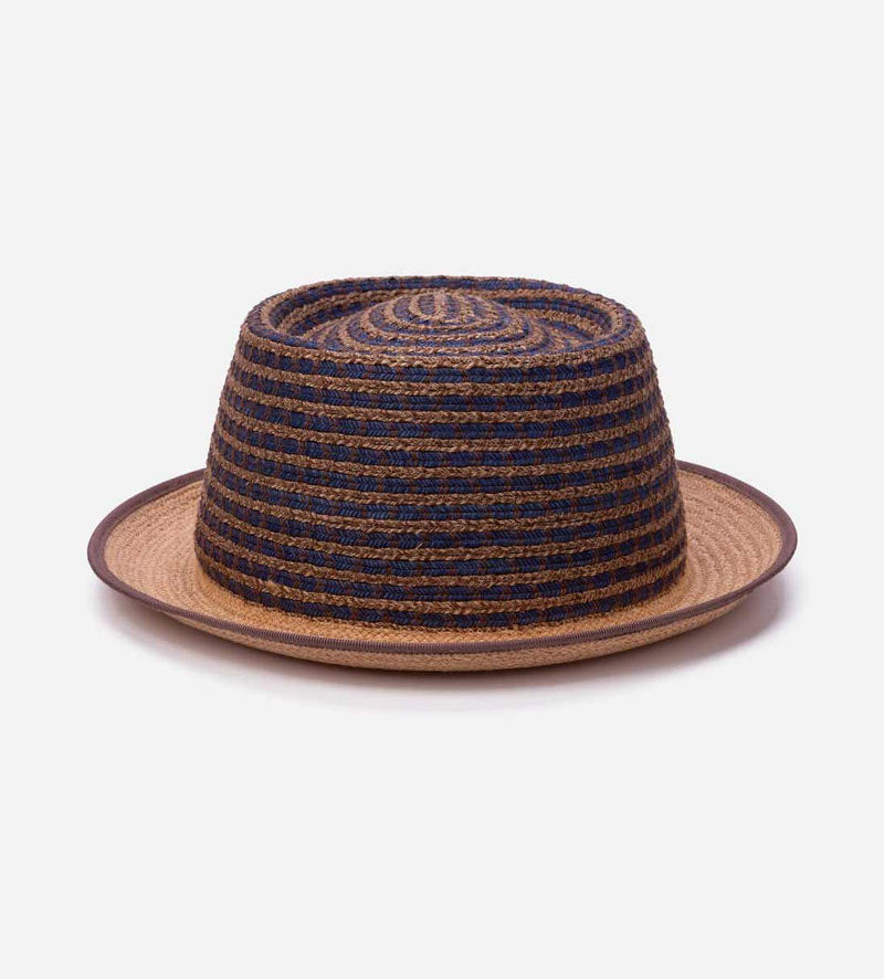 ALBATROSS Raffia & Hemp Pork Pie Short Brim Round Straw Hat Blue-Natural