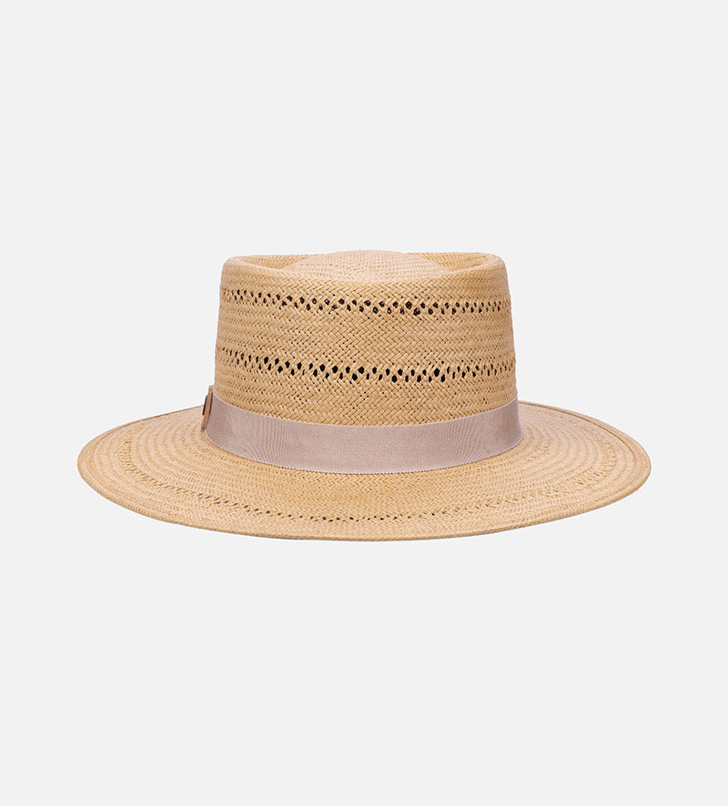 With the classic C-top crown, the plain-colored flat-brim straw hat from Mossant which is made of 100%...