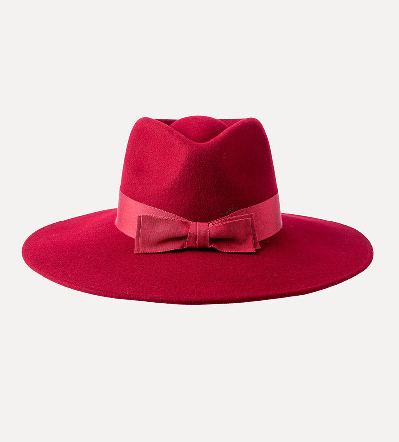 The elegant traditional water drop in the crown. This monochrome red fedora hat from Mossant has been...