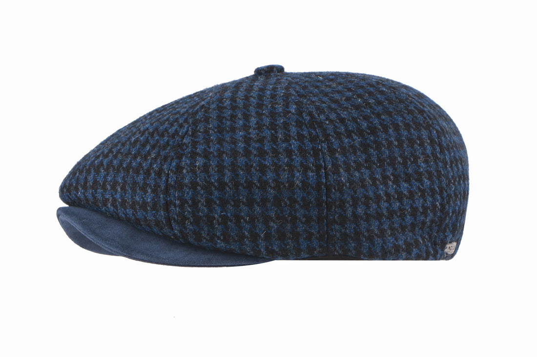 The Felsham Tweed Baker Boy Cap In Blue Houndstooth