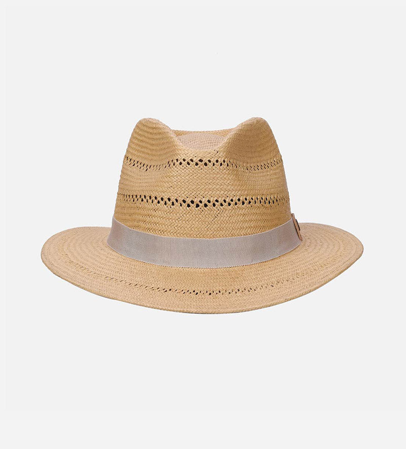 AARON Raffia Surf Straw Fedora Hat Short Brim Dimgrey