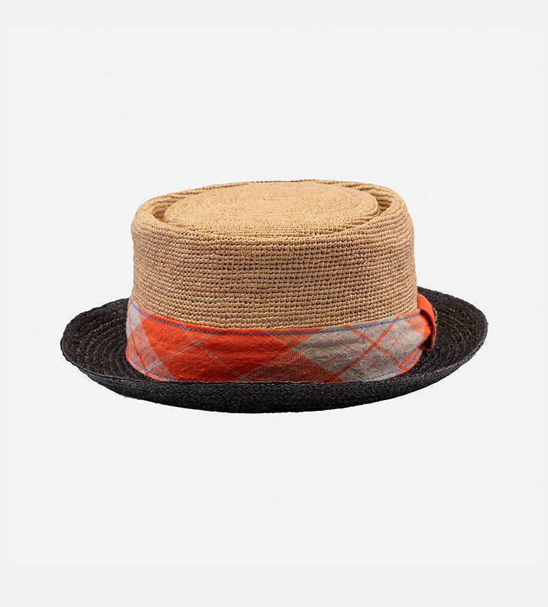 ERIC Raffia Pork Pie Short Brim Darkred Gradient