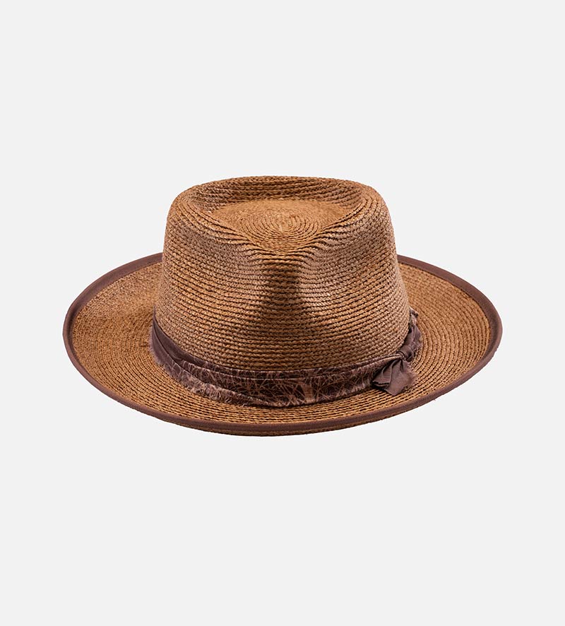 ALLIGATOR Wheat Straw Fedora Short Brim Chocolate