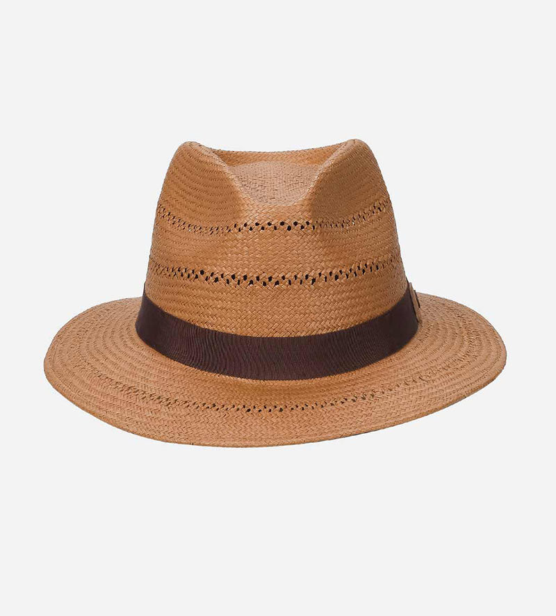 ROUBAIX Raffia Summer Fedora Medium Brim Saddlebrown-Burlywood