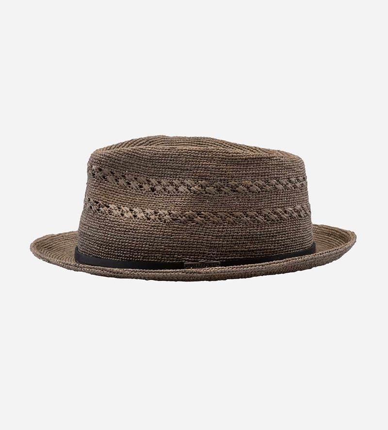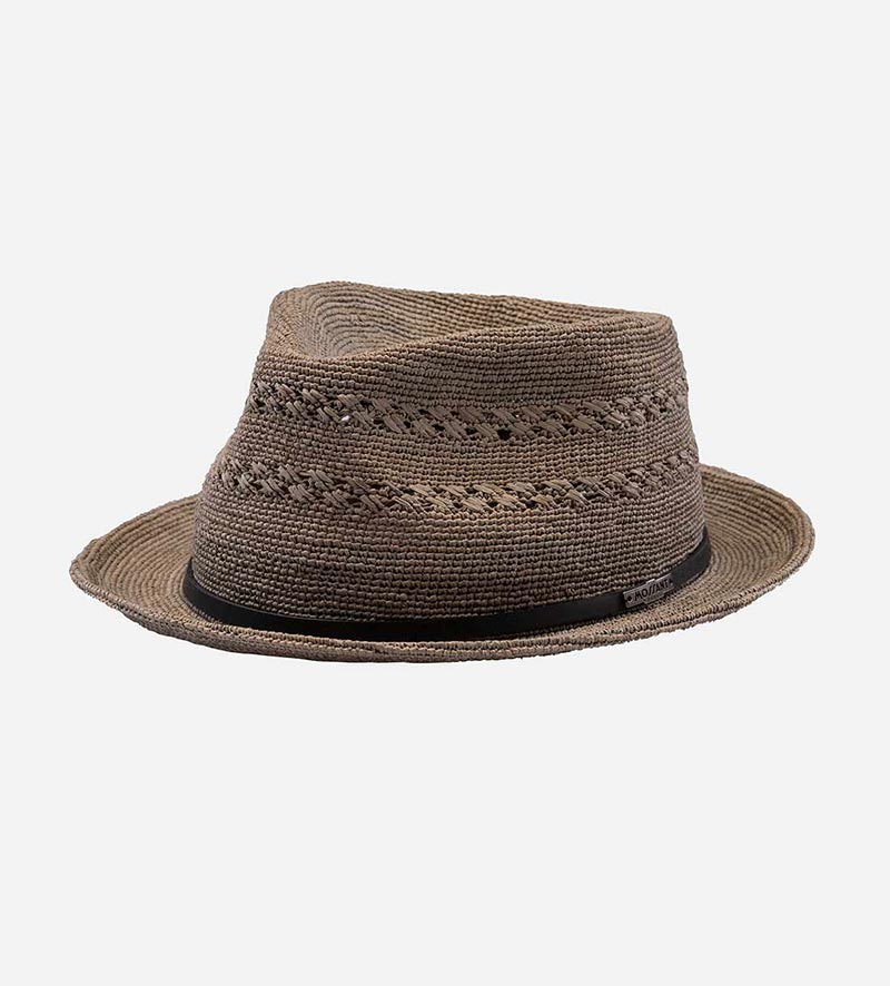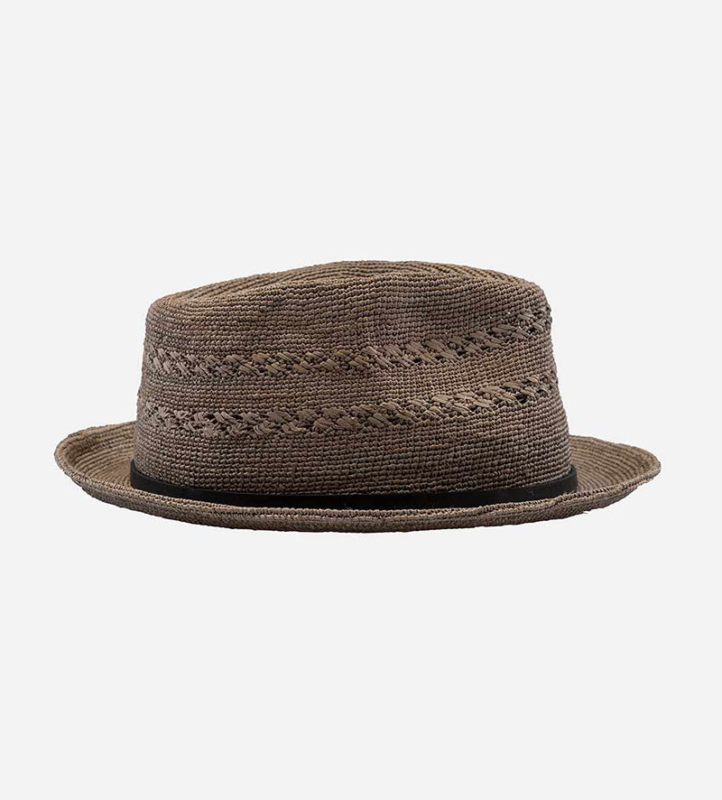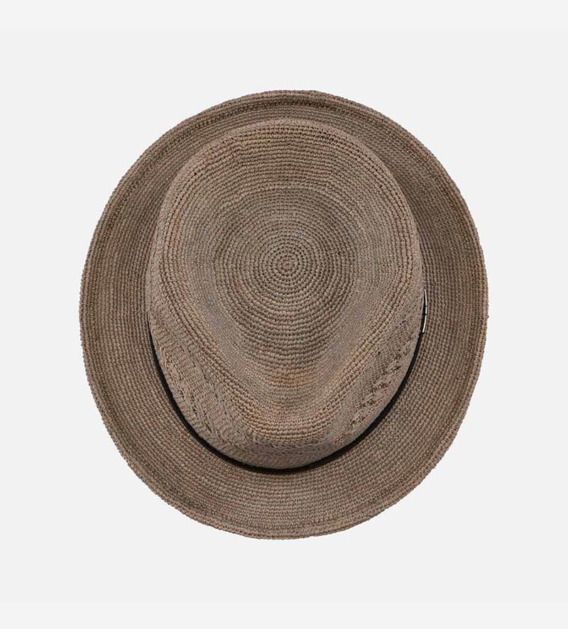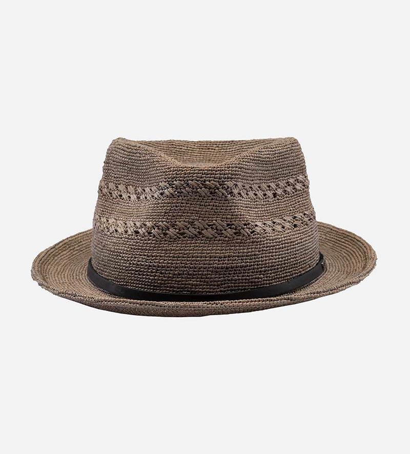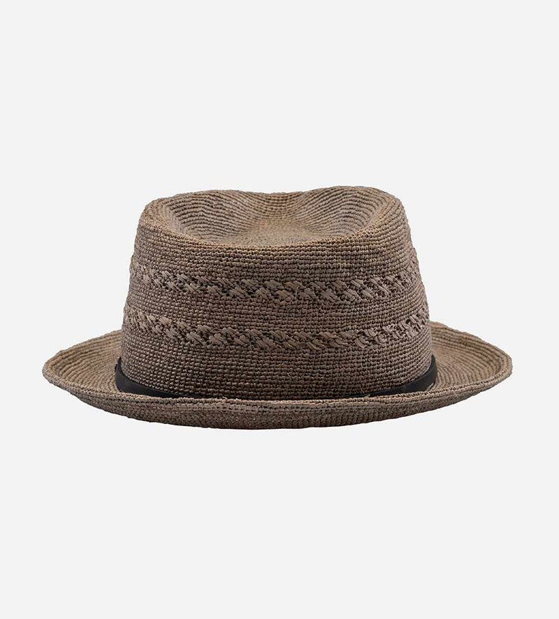 AARON Raffia Surf Straw Fedora Hat Short Brim Dimgrey