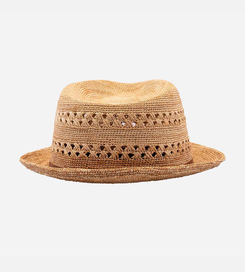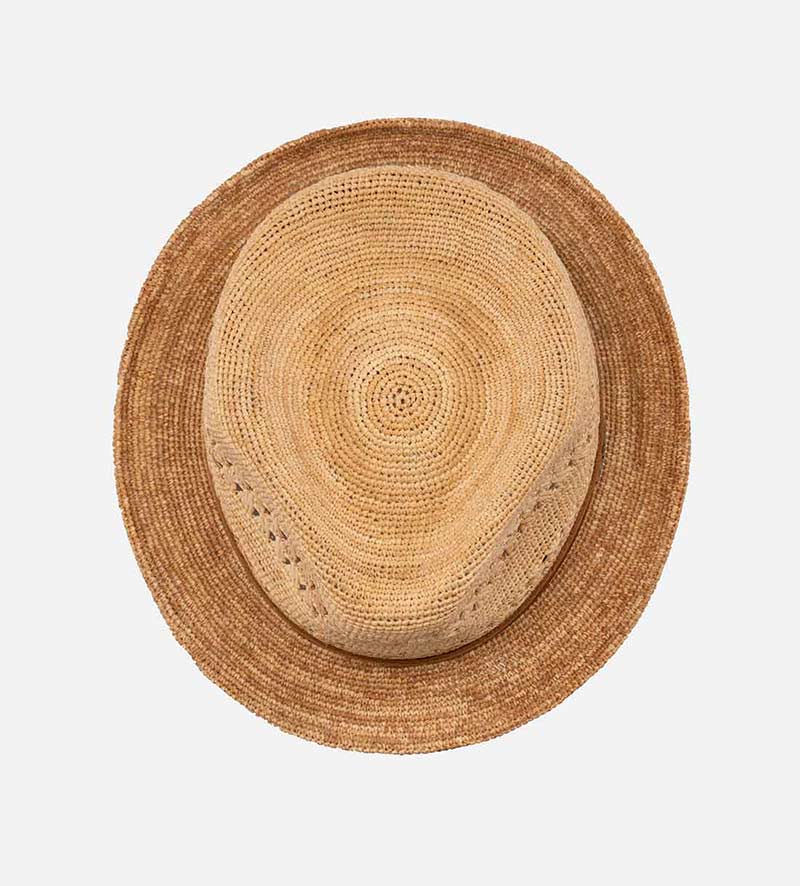 AARON Raffia Vented Straw Fedora Hat Short Brim Burlywood