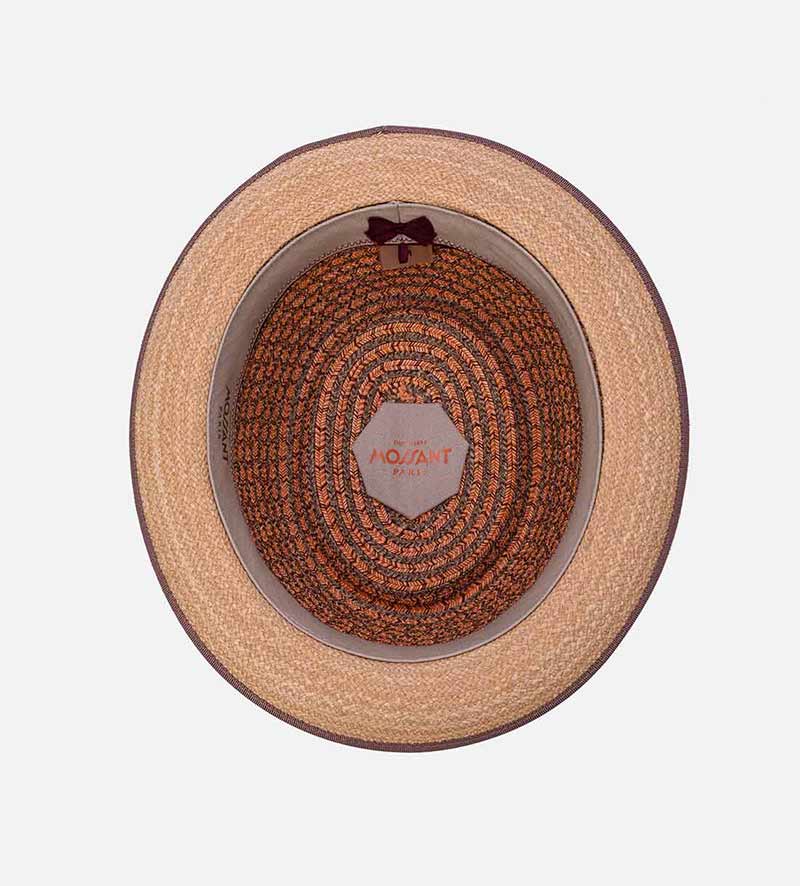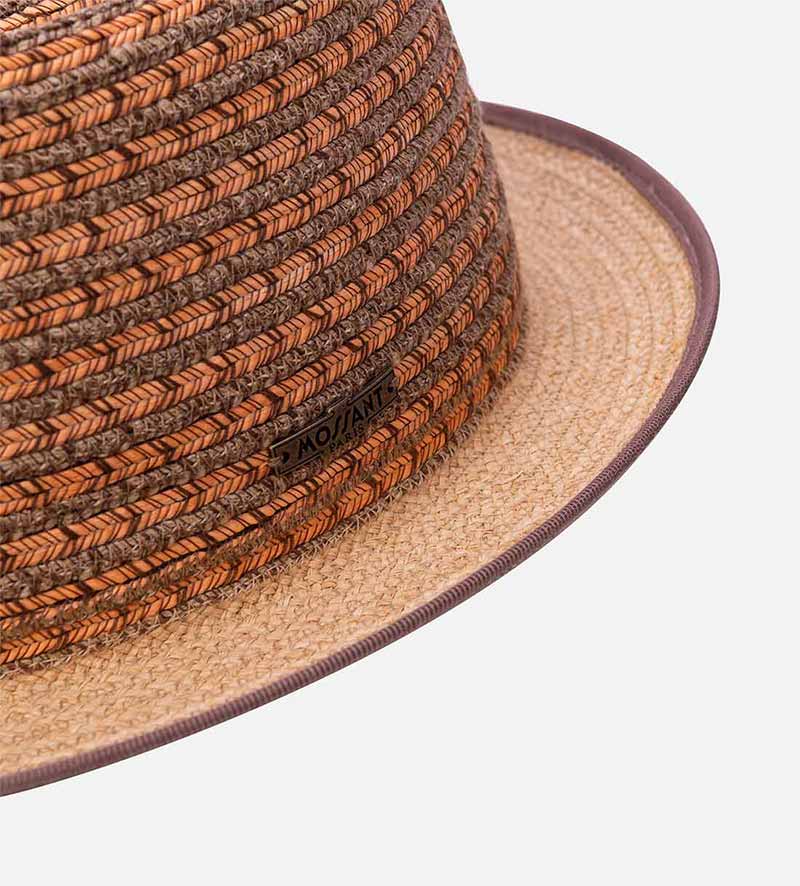 The crown of the pork pie orange sun hat from Mossant is made of blended hemp which proves the hat to be an excitingly eye-catching addition to self-confident outfits. Its classic shape with a short, upturned brim made of raffia straw stands in an exciting contrast with its stylishly heathered material. Two bright colors attract the eye. With its clearly defined shape and high-quality finish, this hat also goes well with a summer blazer and a cotton lining band makes the straw hat pleasantly comfortable to wear.