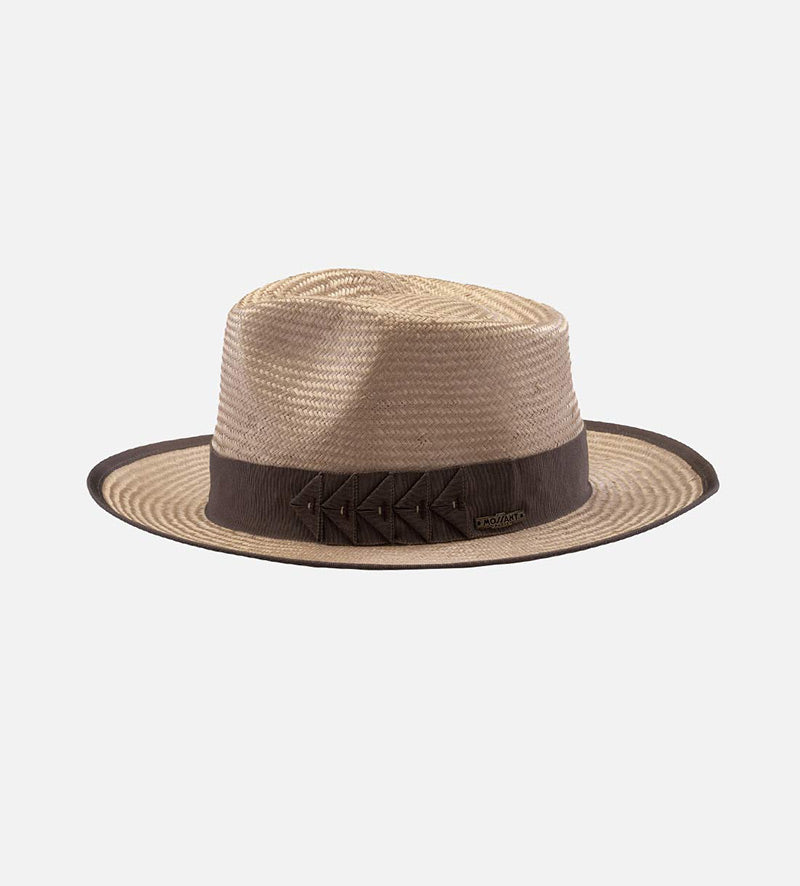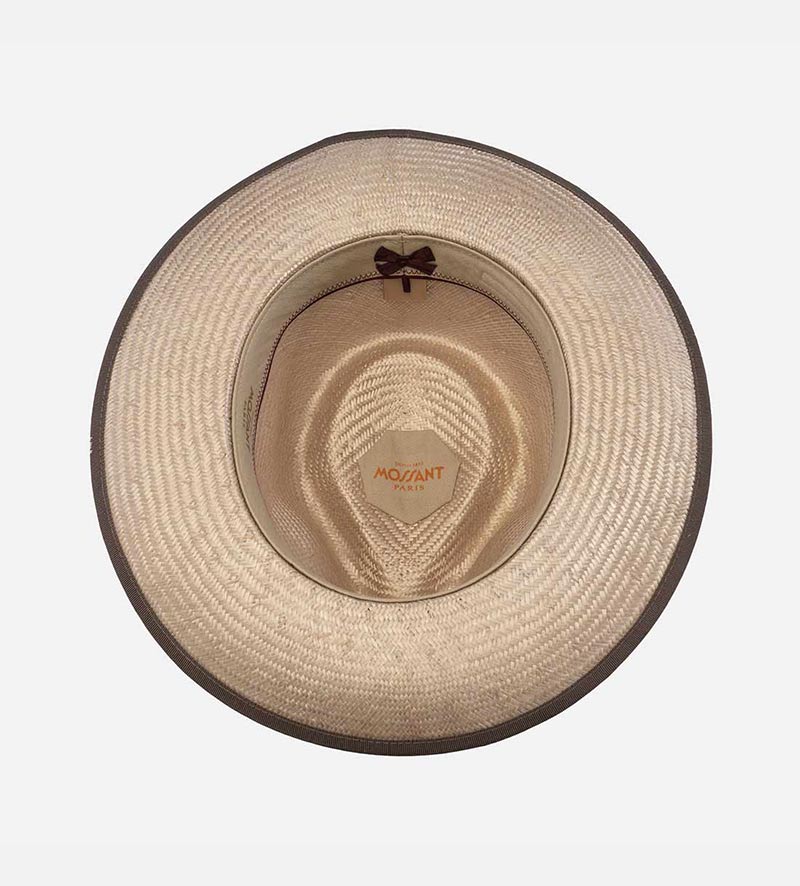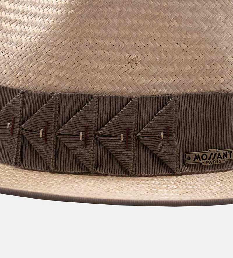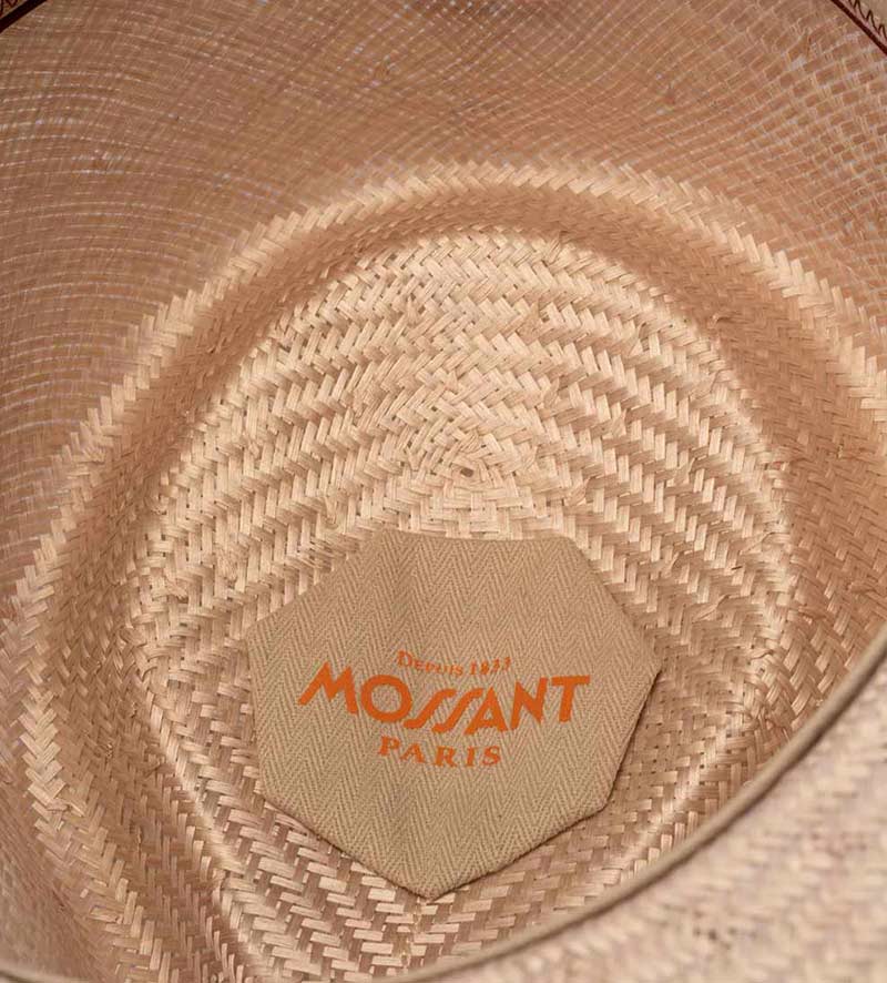 As a stylish accessory for inspiring leisure time, this high-quality straw sun hat made of 100% raffia straw from Mossant awakens the most pleasant holiday feelings. With its teardrop-shaped crown, striking brim sloping discreetly to the front, and decorative wide grosgrain hatband, this ultra-light straw hat is a classic item of headgear. The 100% cotton sweatband will bring comfort when worn on hot days.