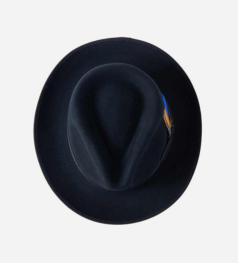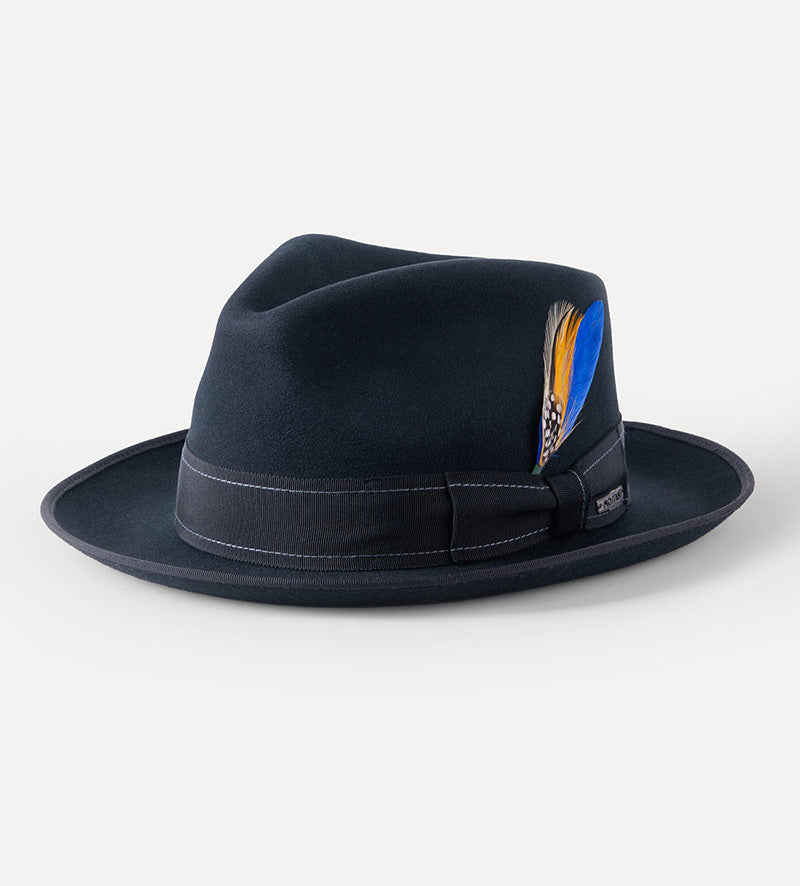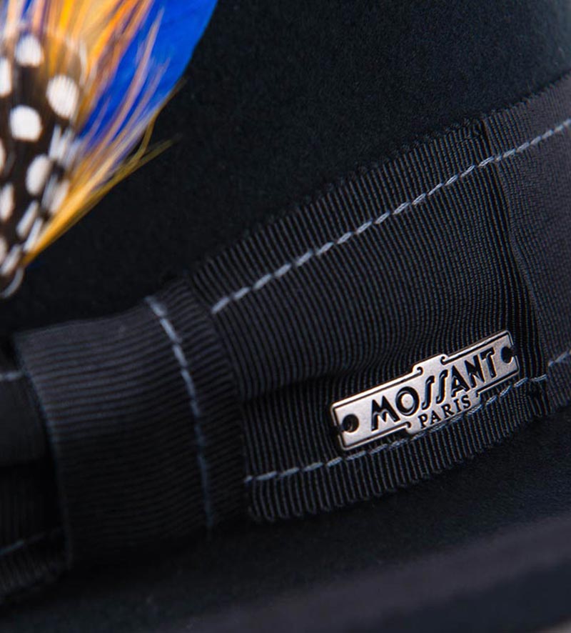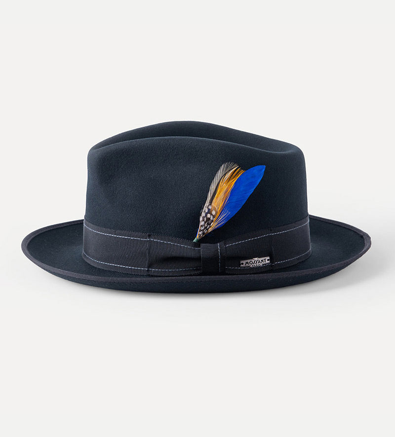 Moss, a famous brand from France with cult status, made this classic fedora in the land of unlimited possibilities. The plain-coloured design is elegantly rounded off by the harmoniously coordinated grosgrain ribbon which holds a playful feather decoration. Wool and cashmere quality gives the outdoor hat its ultra-lightweight proving invaluable on every trip. With a cotton blend lining band.