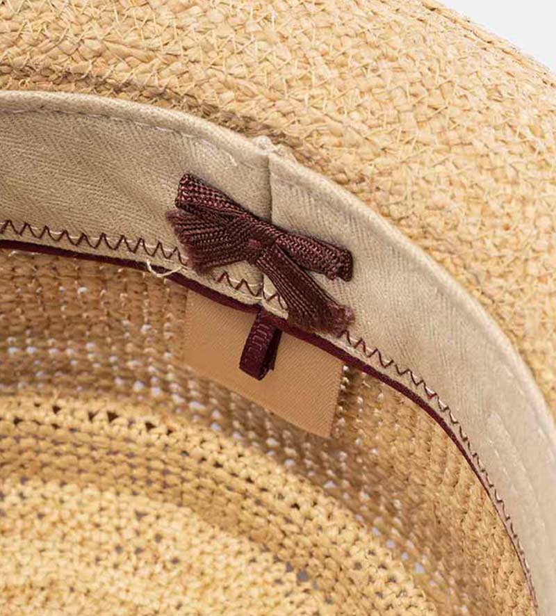 This stylish cute straw hat impresses with the usual high quality of the Mossant brand. The elegant raffia straw gives its summery properties. It is something special with its refined yet equally stylish appearance and stands out from the crowd right down to its brand emblem with its stripe coloring, which provides a stylish contrast to sunshine green grass, and yellow soil. Equipped with natural material, this straw hat provides noteworthy protection against harsh sunshine.