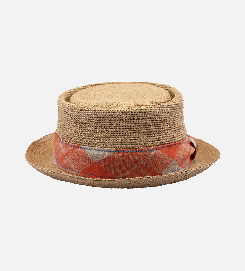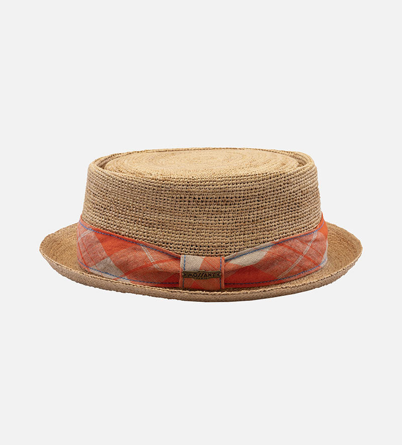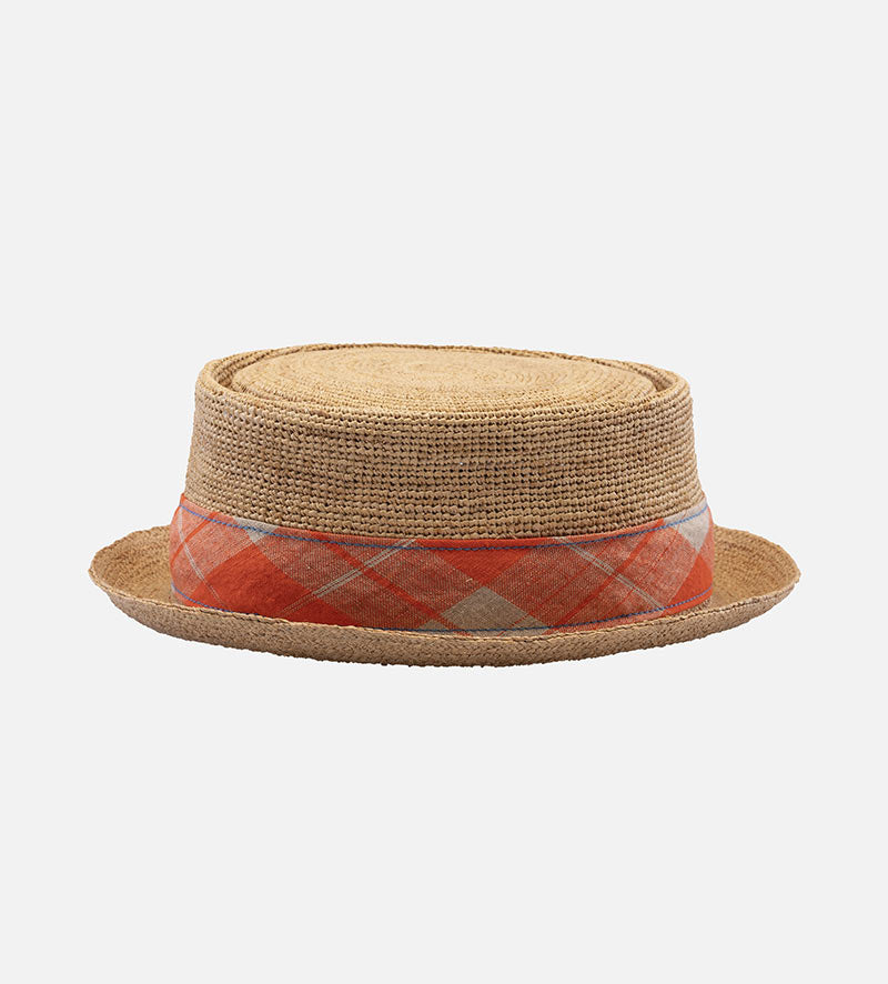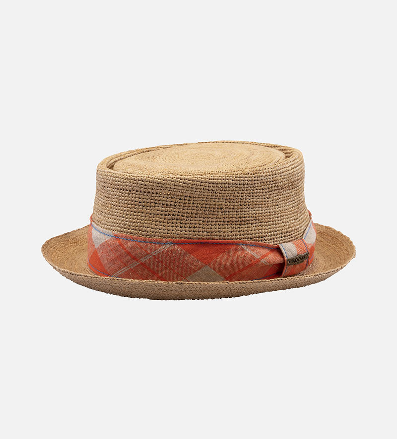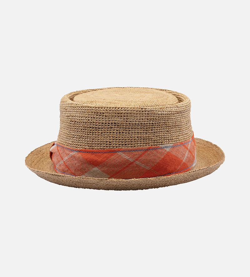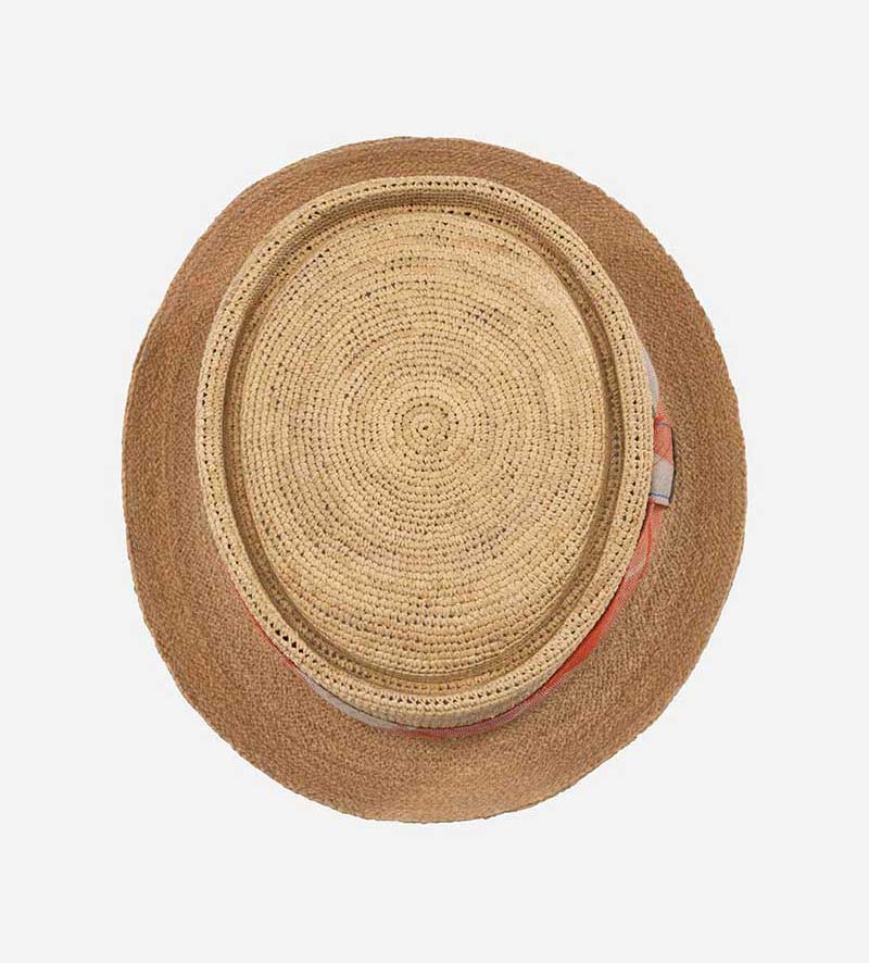 CAIN Raffia Pork Pie Cute Straw Hat Short Brim Burlywood