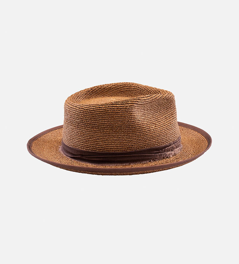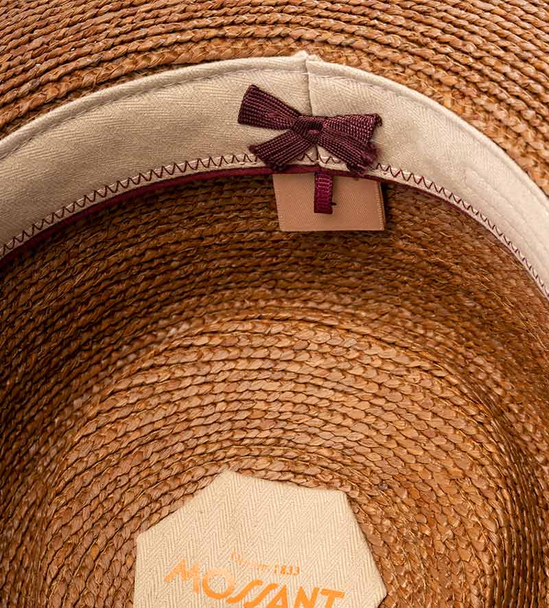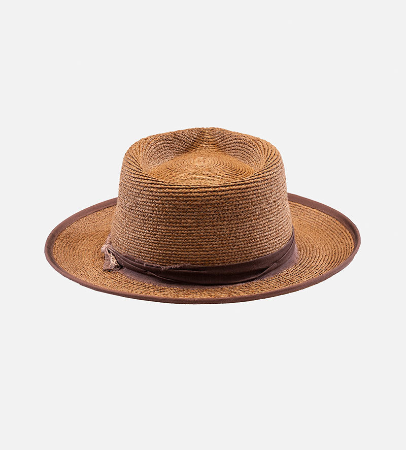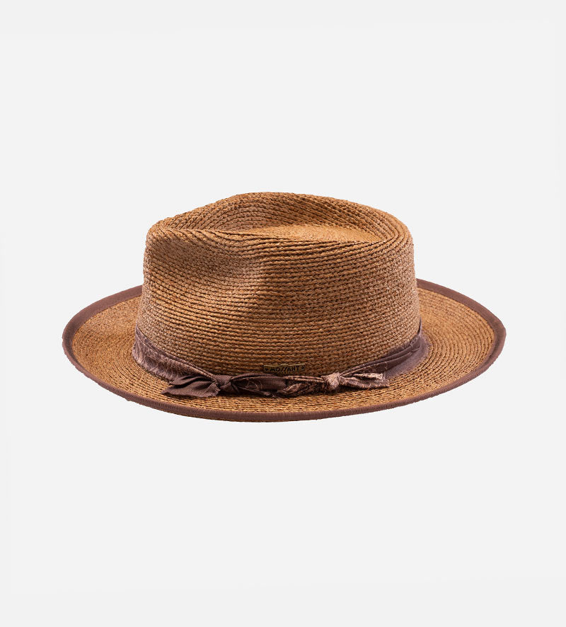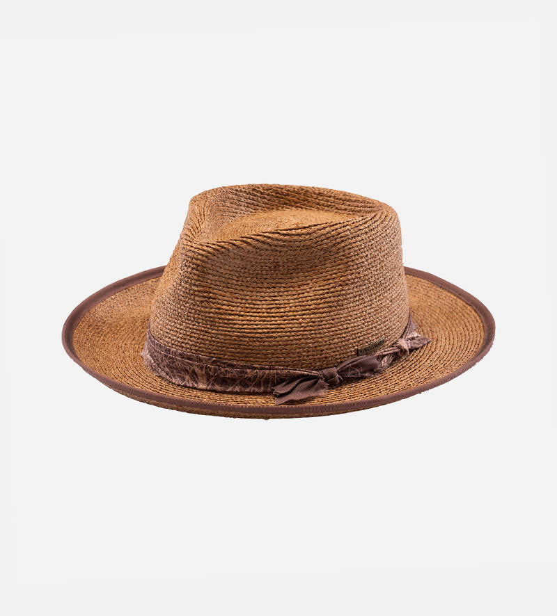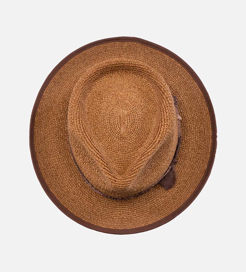 CANDOR Raffia Straw Fedora Widebrim Saddlebrown