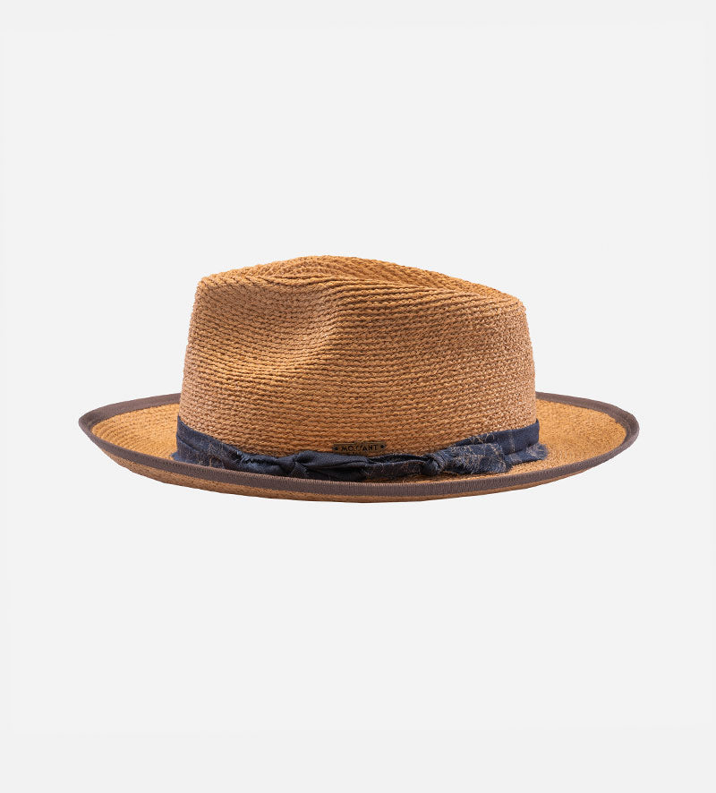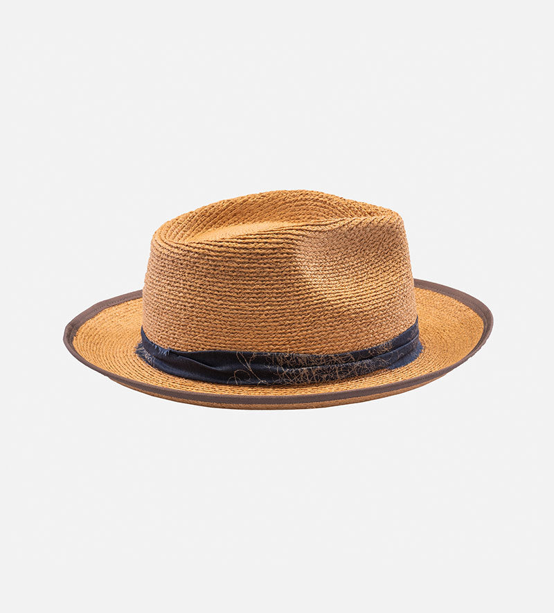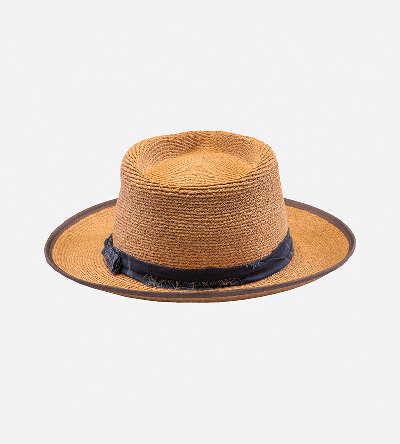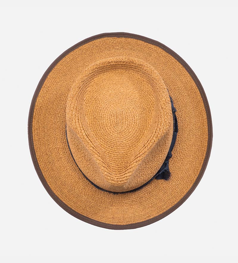 CANDOR Raffia Straw Fedora Widebrim Tan