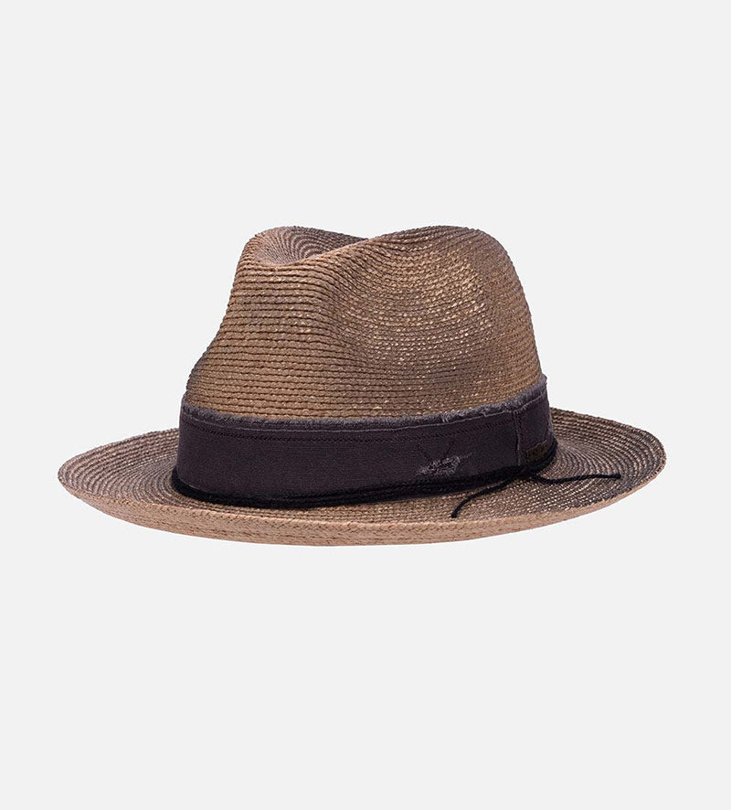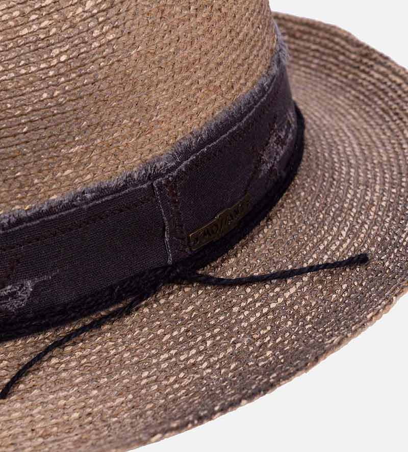 CATIOLA Raffia Distressed Fedora Medium Brim Burlywood
