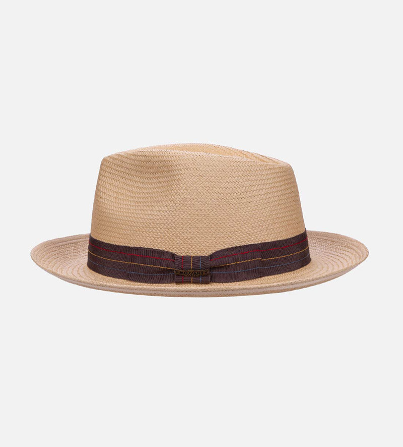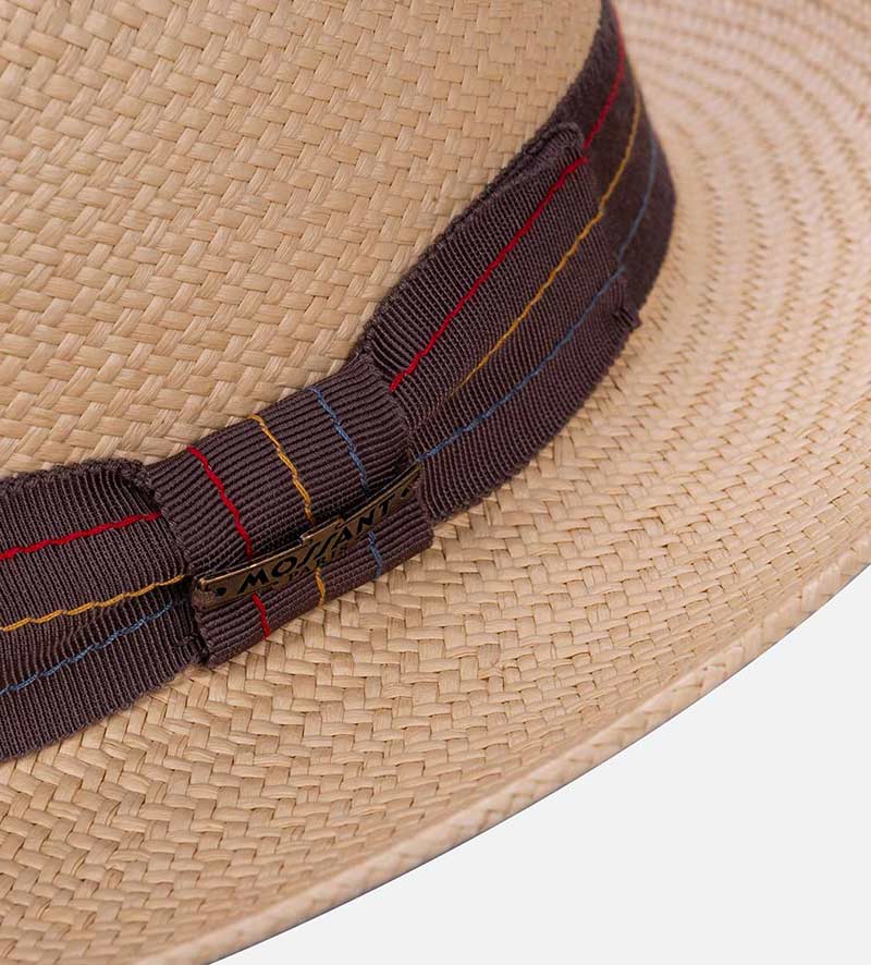 The finest dyed 3 BU Toyo paper straw with a lightweight knows its purpose well, which scores points with its flexible finish and pleasant wearing comfort. It is the summary secret of this elegant Mossant straw beach hat, which comes equipped with a cotton lining band inside.  The straw beach hat features a striped grosgrain ribbon trim, which shows off the expansive brim perfectly to ensure it looks as good as it feels: Start the summer excellently protected by Mossant.