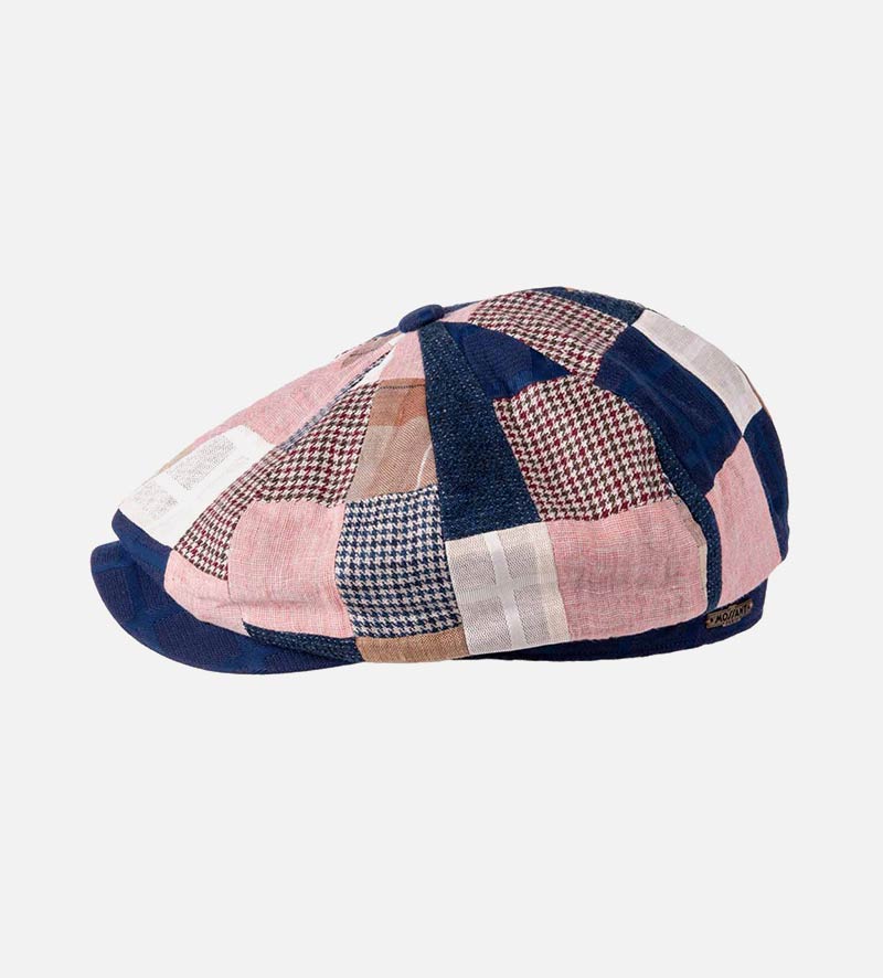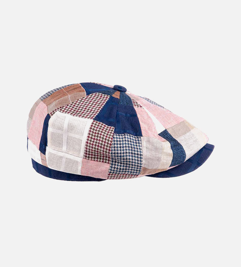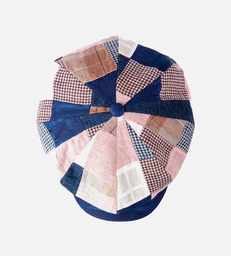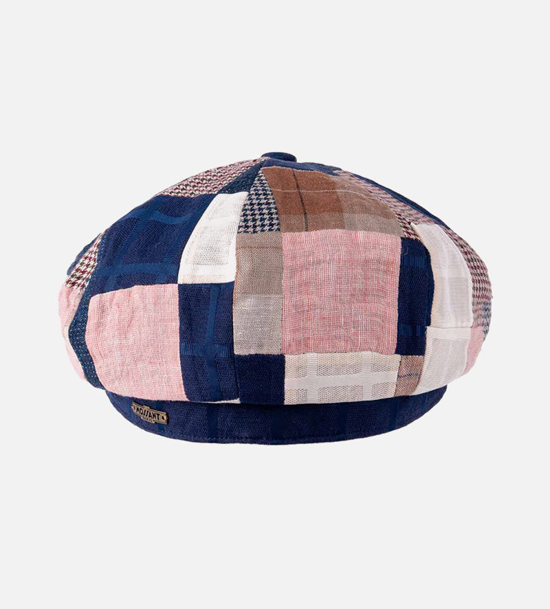 This high-quality wool newsboy cap from Mossant is in a striking patchwork design, it draws all eyes to it with its multifaceted design. The carefully processed material is made up of numerous visually contrasting patches. It brings together various colors, as well as smaller and larger patterns. The high cotton content in the lining makes the hat comfortable to wear. Made from linen, wool, and cotton.