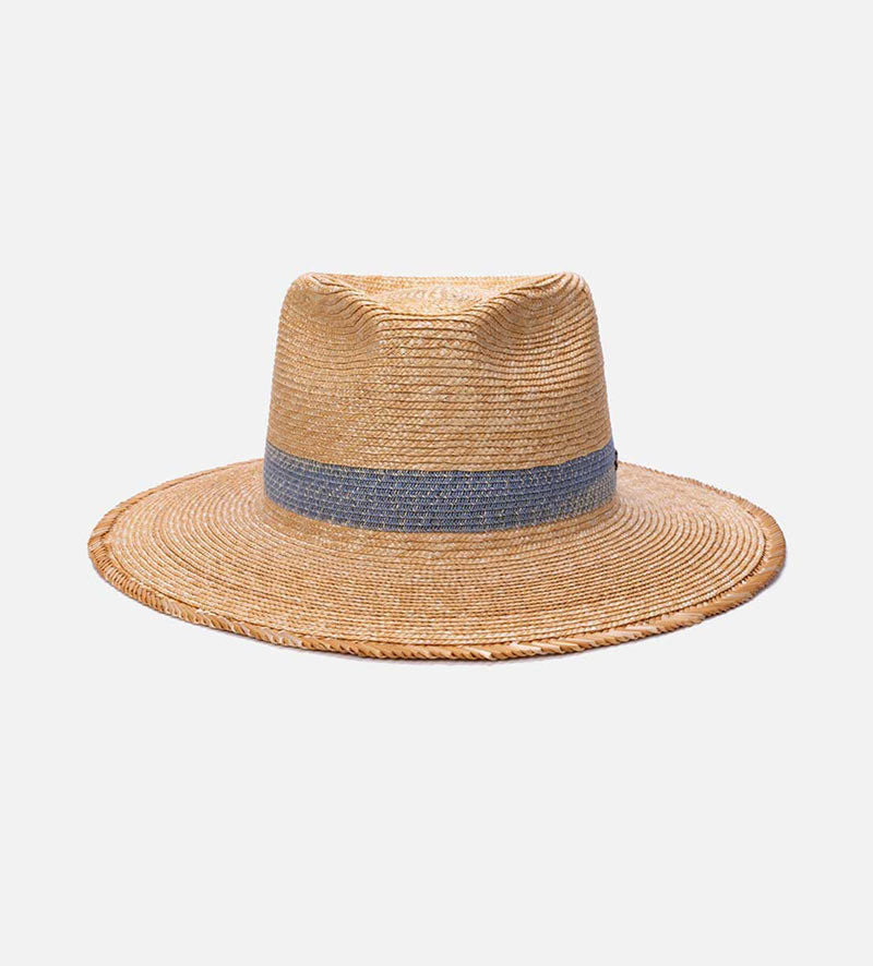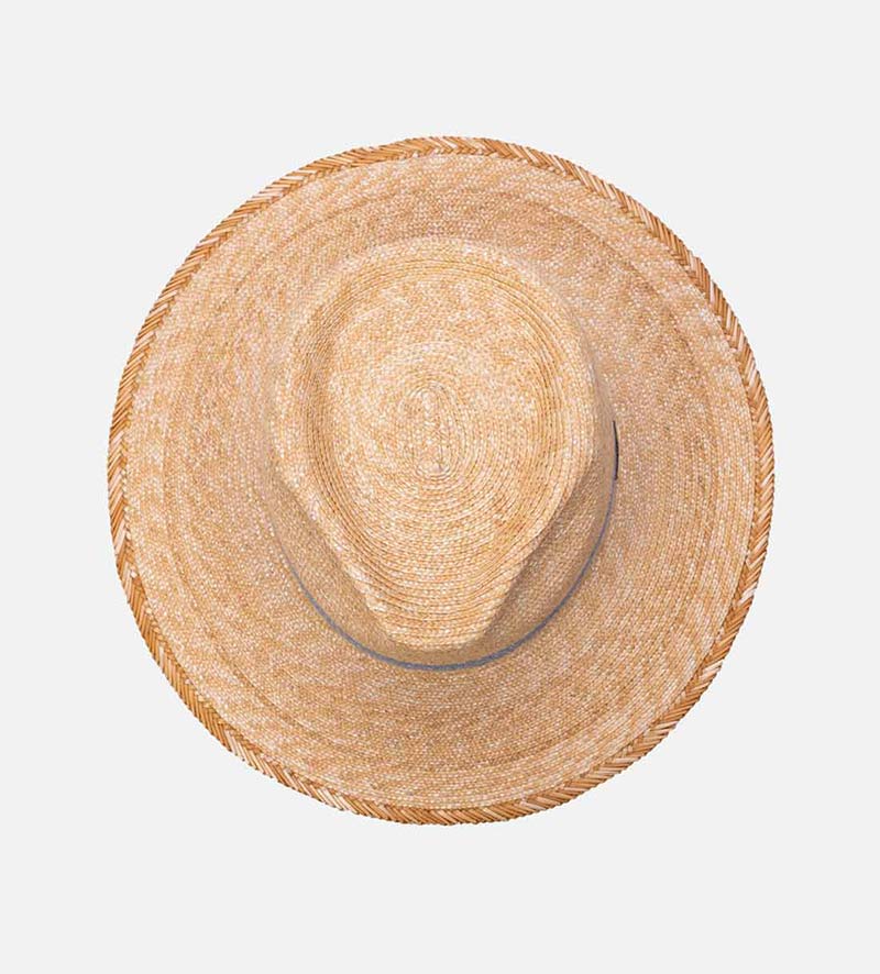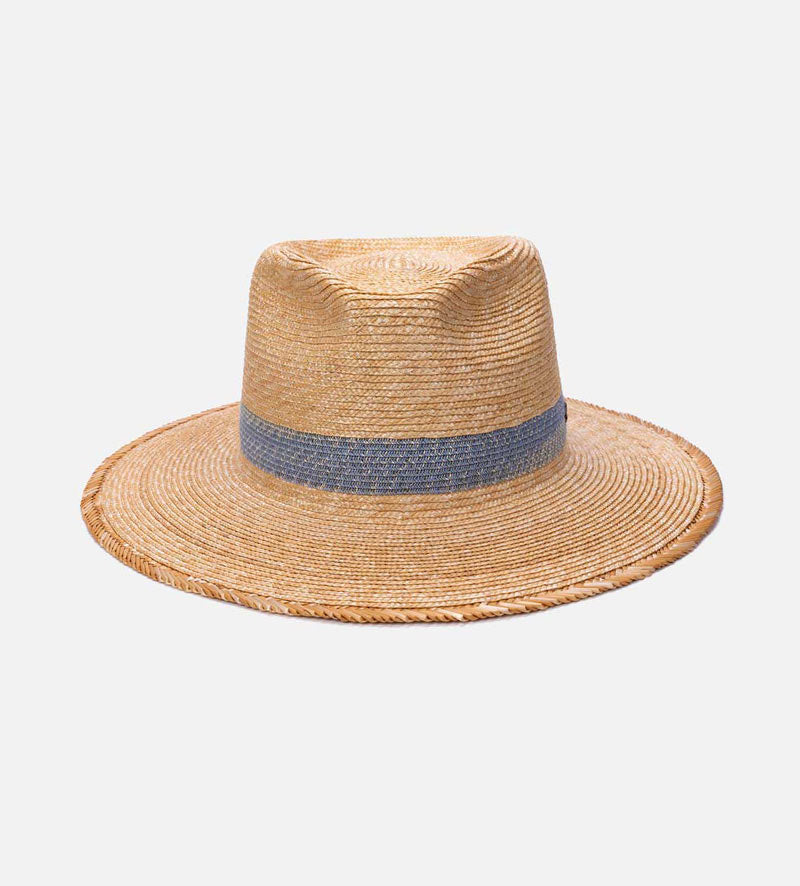 JUPITER Wheat Wide Brim Straw Fedora With Light Blue Band