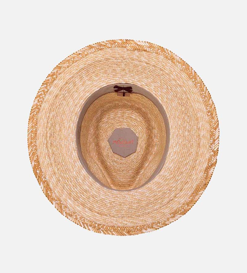 Whether you are strolling along the promenade by the seaside or window shopping in the city, this summer wide-brim straw fedora hat from Mossant is made of high-quality wheat straw, the sweeping brim is the ultimate way to shade your eyes and face from the sun without sacrificing style and breathability. The eye-catching ribbon which is made of plain colored raffia braid has a strong contrast with the color of the crown and the brim. With a shiny metallic brand emblem.