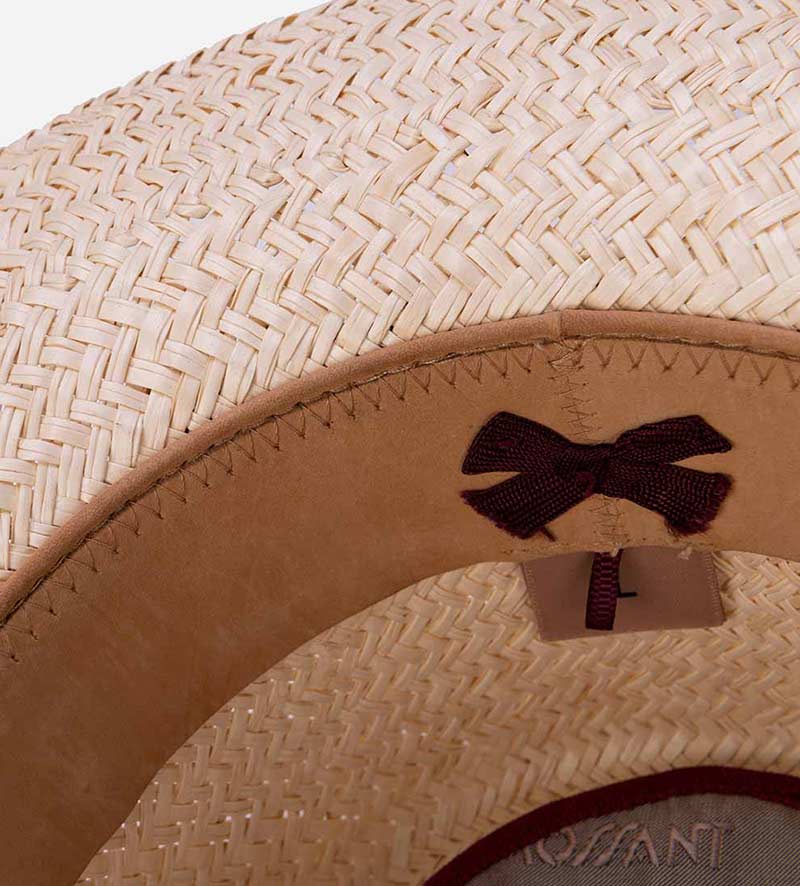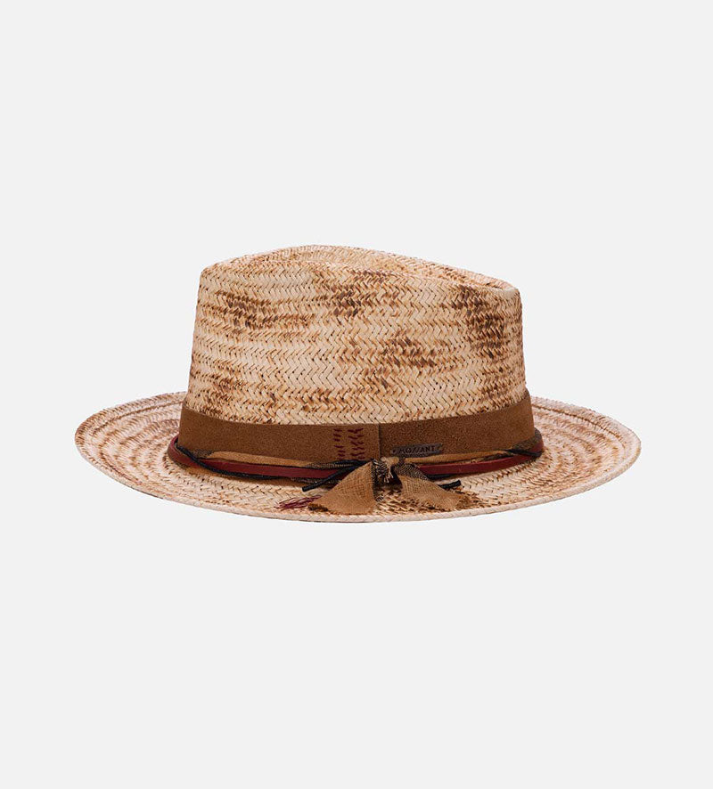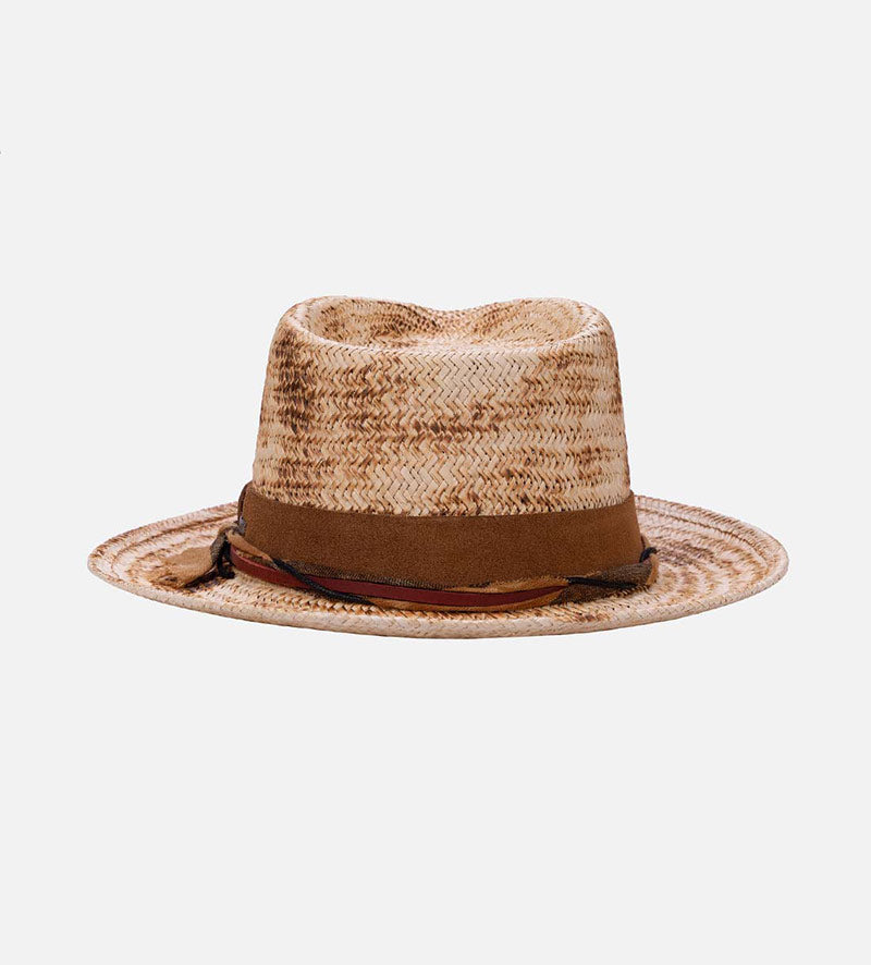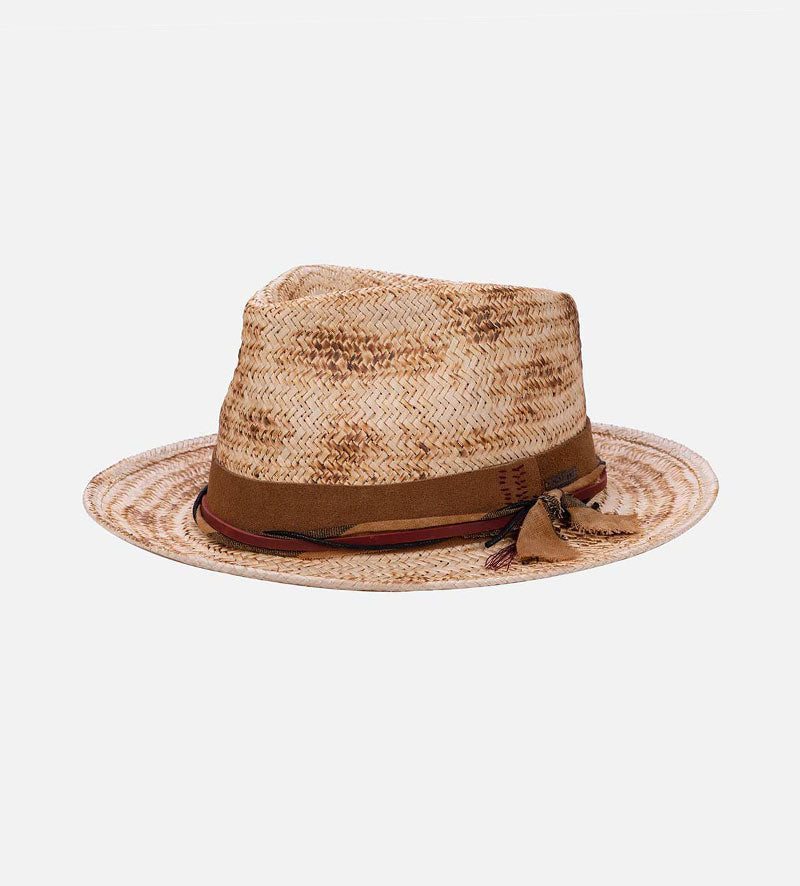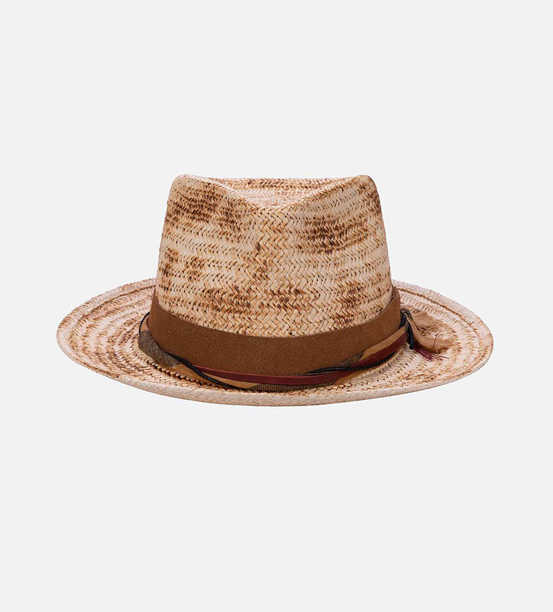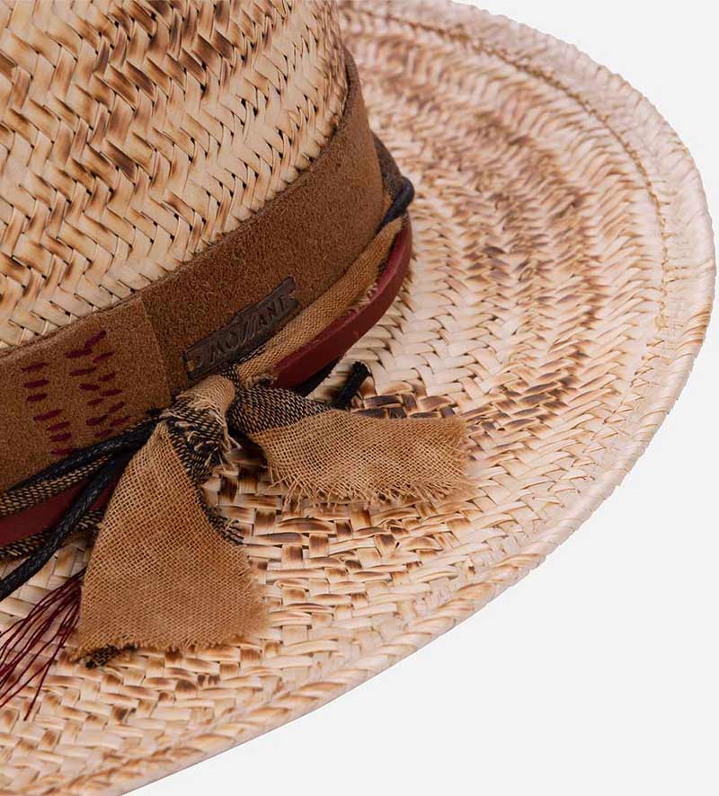 With its hand-woven material made of 100% Palm fiber, the high-quality player woven sun hat from Mossant looks lovely and light. At the same time, the carefully woven mesh takes nothing away from the classically elegant charm that makes the chic fedora stand out. A color-contrasting trim with a narrow leather belt and colored textile neatly completes the look.