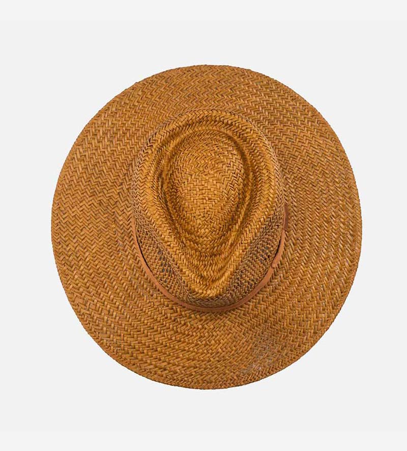 LA ROCHELLE Palm Fiber Fedora Large Brim Mens Straw Sun Hat Saddlebrown