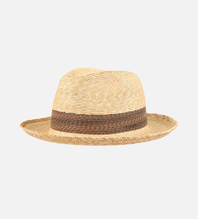 Stylish and traditional. A charming farmer design made of 100% high-quality wheat straw the elaborate craftsmanship made this stylish traditional Mossant hat to be attractive. The monochrome crown is encircled by a finely woven raffia ribbon in a harmonious contrasting color. The outdoor hat's slightly upturned brim protection keeps its wearer well protected on hot days, while the air permeability of the material keeps the head cool. The metallic emblem is fixed.