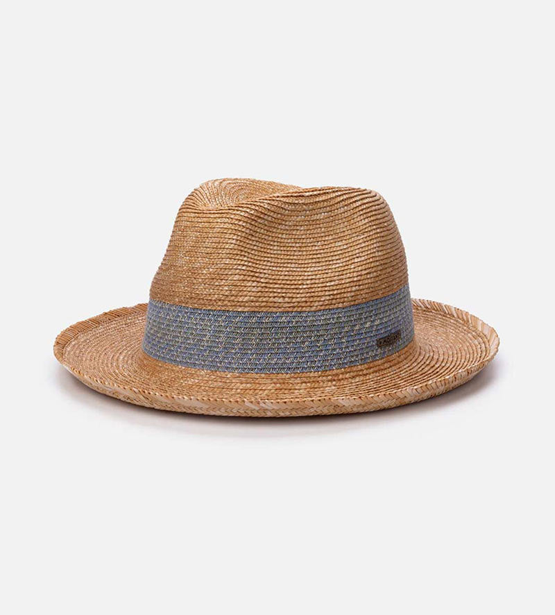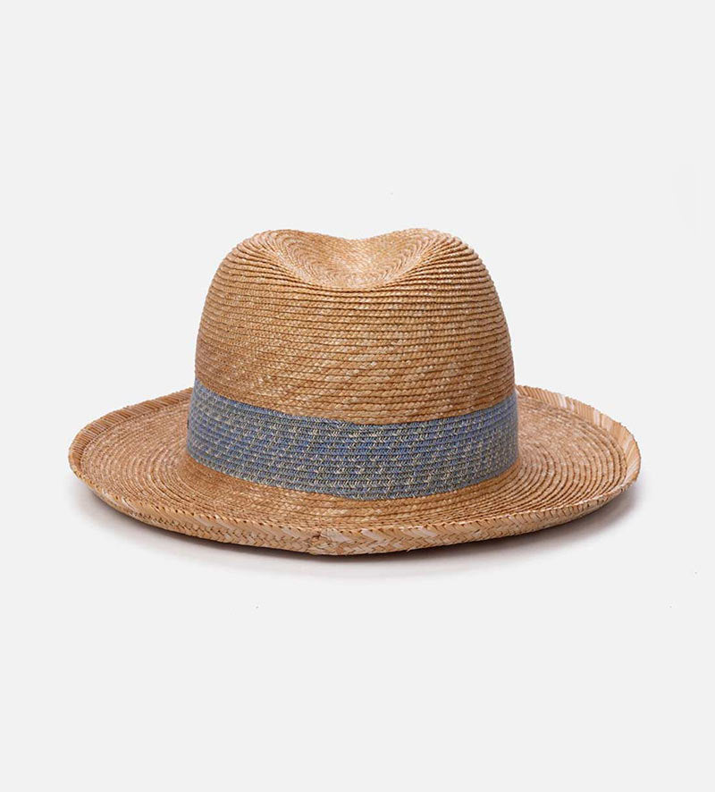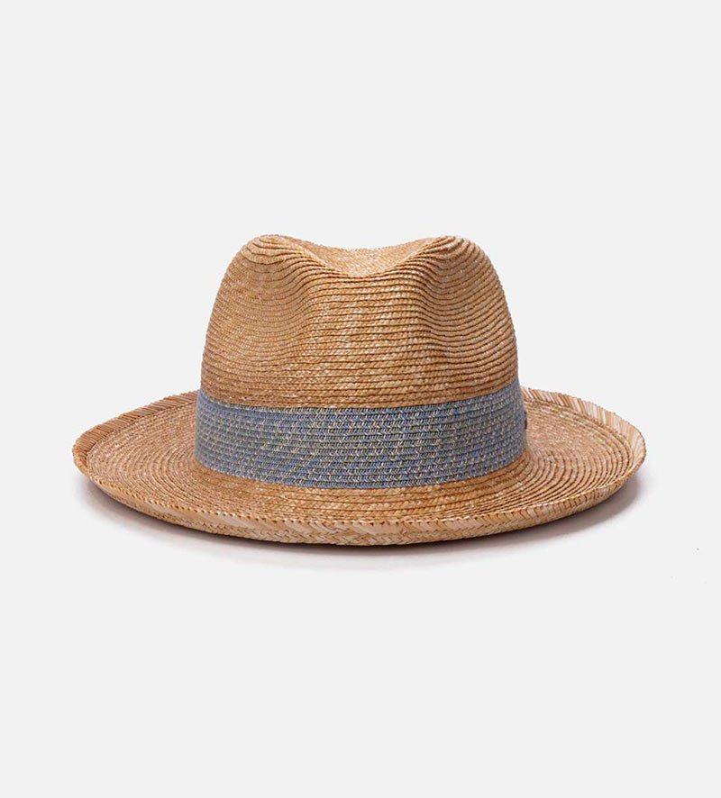 MARS Wheat Straw Roll Up Sun Hat With Light Blue Band