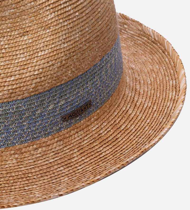 Stylish and traditional. A charming farmer design made of 100% high-quality wheat straw by the elaborate craftsmanship made this stylish traditional Mossant roll-up sun hat to be attractive. The monochrome crown is encircled by a finely woven raffia ribbon in a harmonious contrasting color. The outdoor hat's slightly upturned brim protection keeps its wearer well protected on hot days, while the air permeability of the material keeps the head cool. The metallic emblem is fixed.
