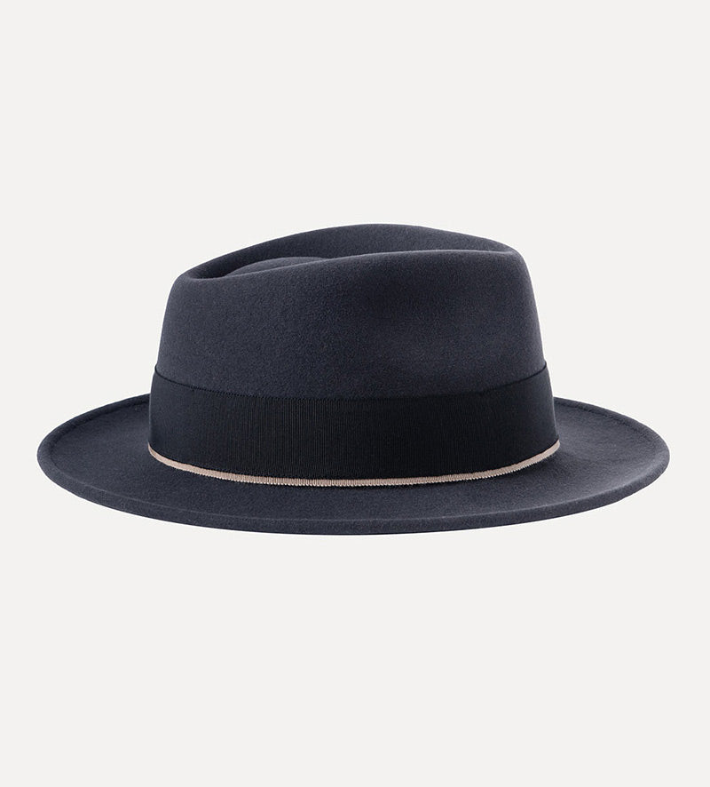 Mens Felt Fedora Short Brim Gray Wool And Cashmere