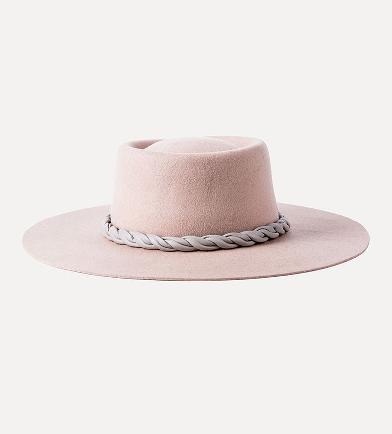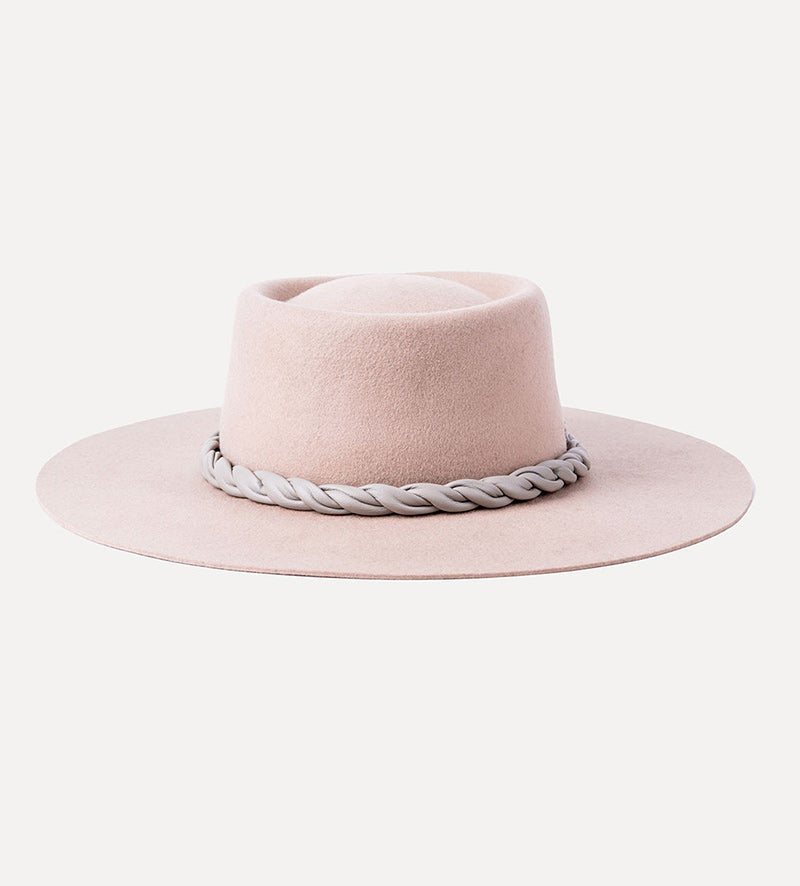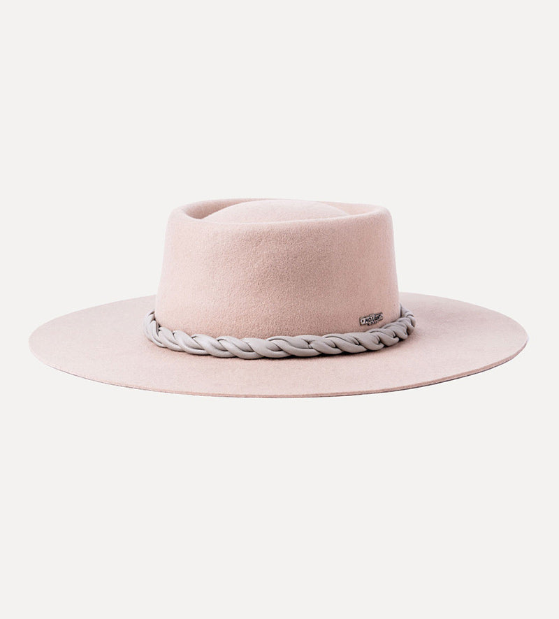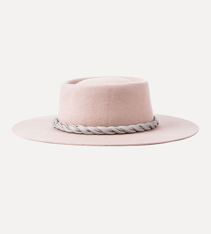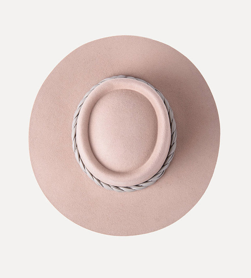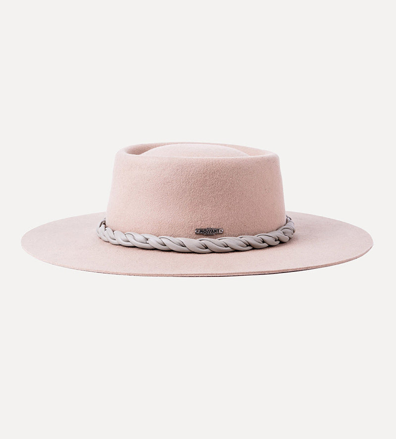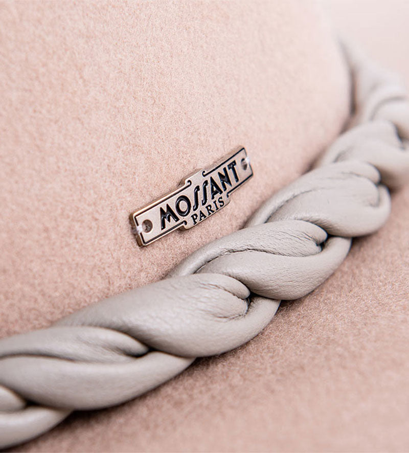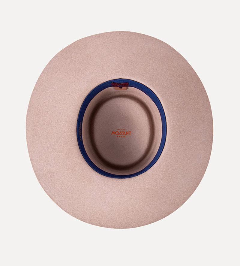 Straightforward classic men's wide-brim fedora hat from Mossant. Plain-colored wool felt and a telescope crown design gives this handmade classic from Mossant an authentic look. Above the subtly curved brim, a hand-woven leather trim strip encircles the crown, and above it sits a brand emblem with an iris design that shows the origin of the attractive felt hat, which looks just as good with a casual shirt as it does with sophisticated attire. High quality from the excellent craftsmanship.