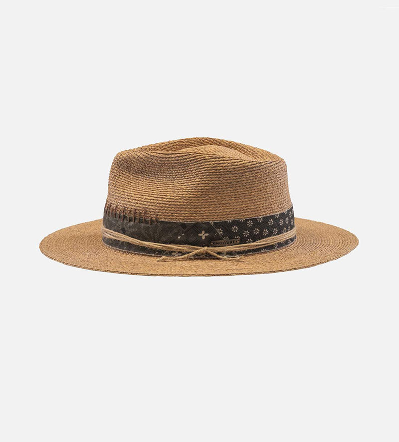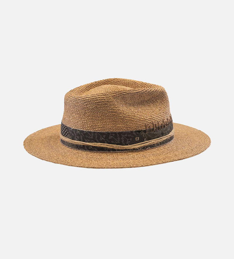 NAPHTALI Raffia Straw Fedora Medium Brim Tan