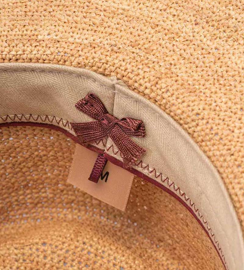 Your head is sure to need lightweight when the sun is shining on hot days. This is offered by this stylish men's straw beach hat from Mossant woven from 100% raffia straw, the brim of which features a narrow, contrasting edging and provides a pleasant amount of shade. A smart look grosgrain band and the flat bow encircle the perfectly formed crown and skilfully visually emphasize that carefree summer feeling. The wearer will feel comfortable with the 100% cotton sweatband when wearing it.