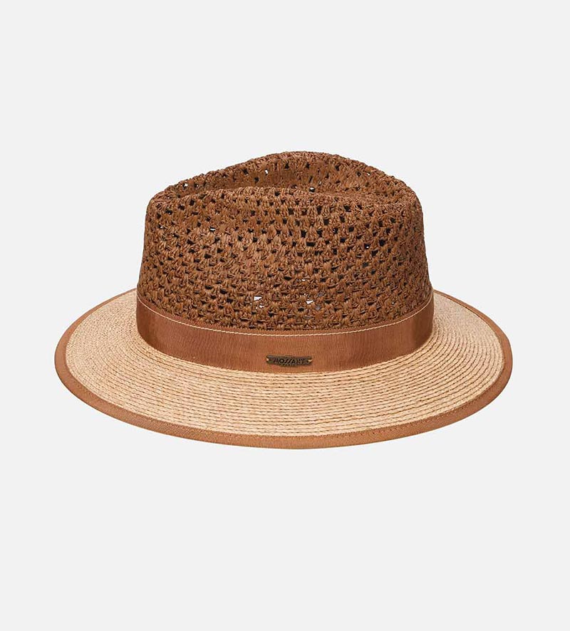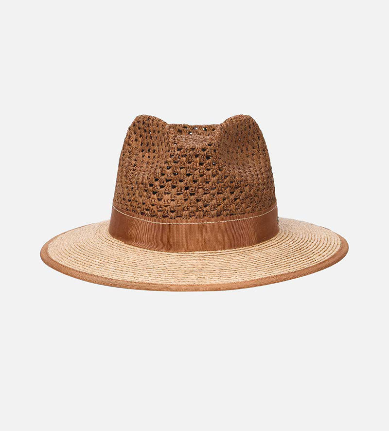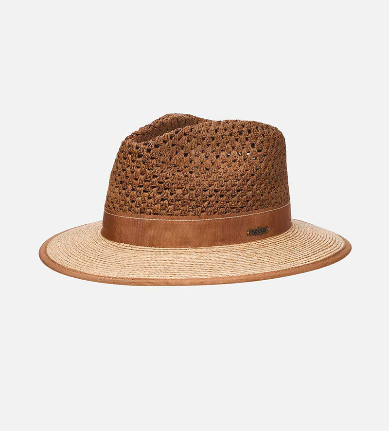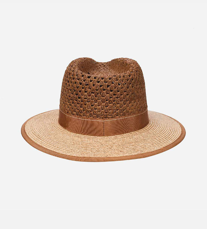 ROUBAIX Raffia Summer Fedora Medium Brim Saddlebrown-Burlywood