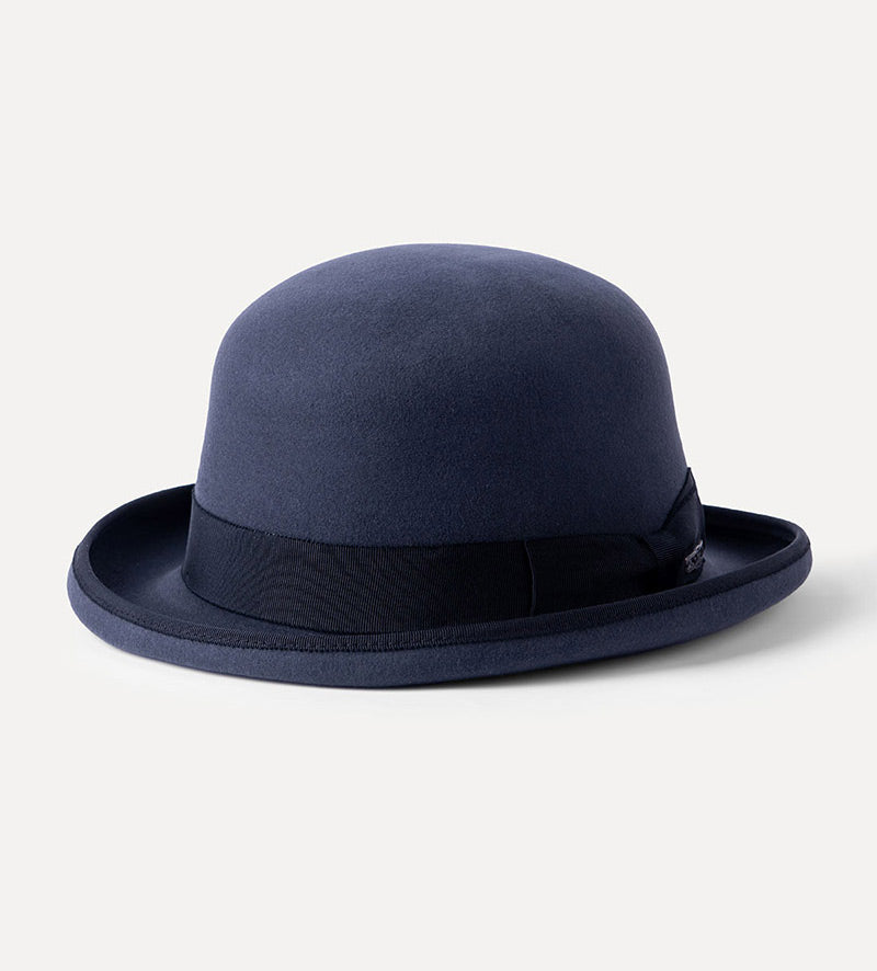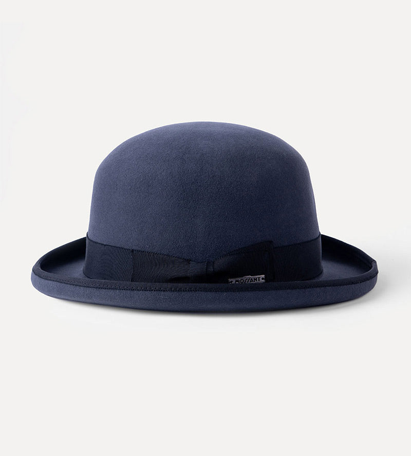 This refined men's bowler hat from Mossant meets the highest quality requirements of a stylish outfit by being made of a mix of 80% wool and 20% cashmere. With a 100% cotton inner band, satin lining, matching color grosgrain ribbon trim, and bound edging, this occasion hat is exceptionally comfortable to wear.