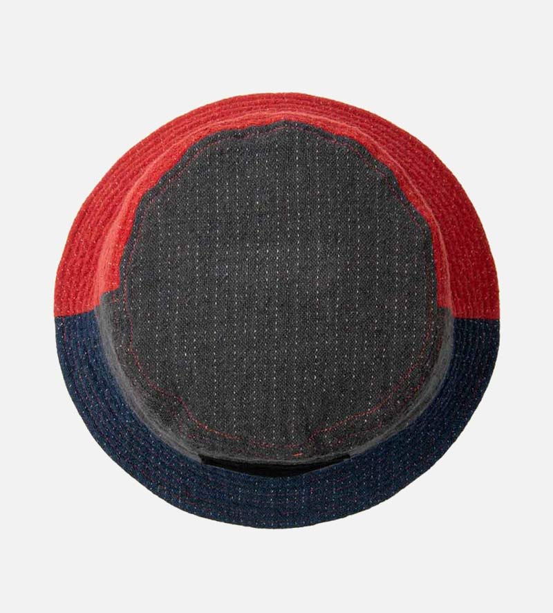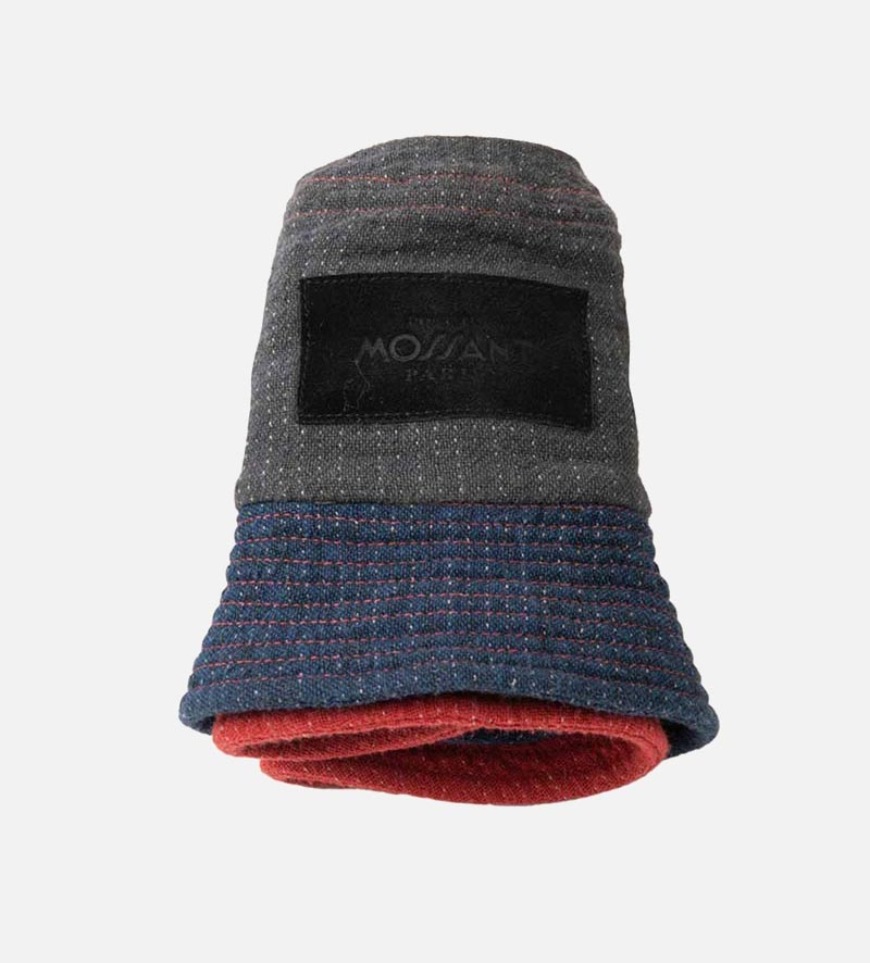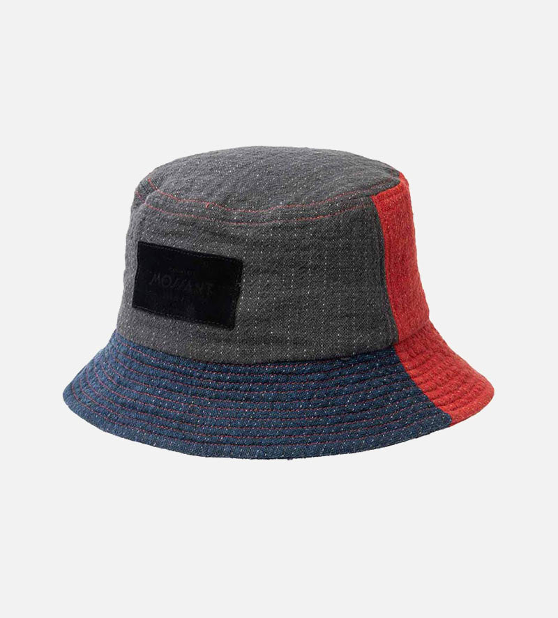 SIMEON Linen-Cotton Beach Bucket Hat Gray-Blue-Red