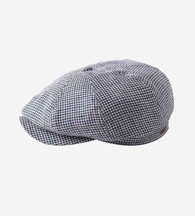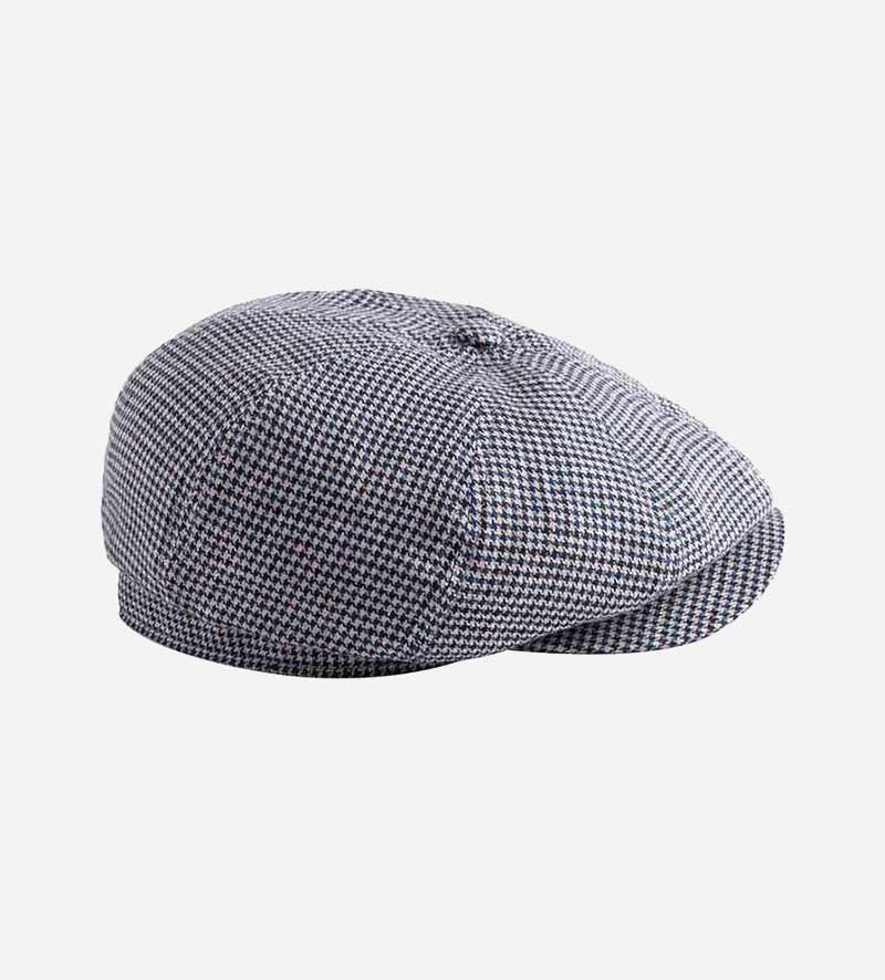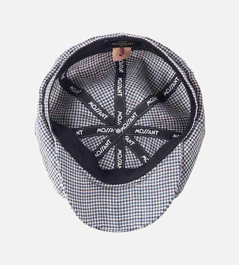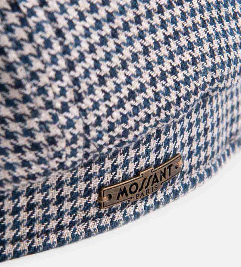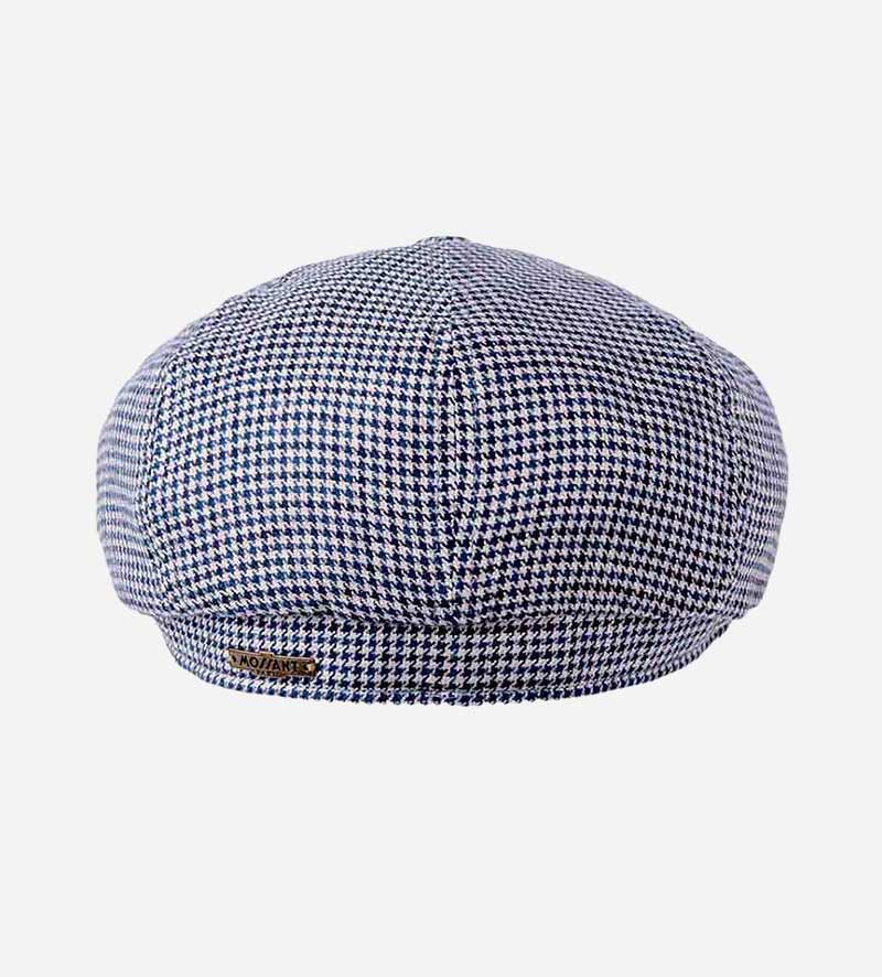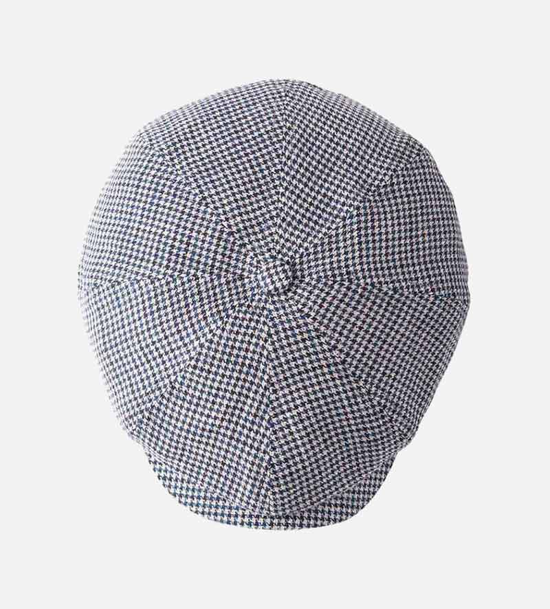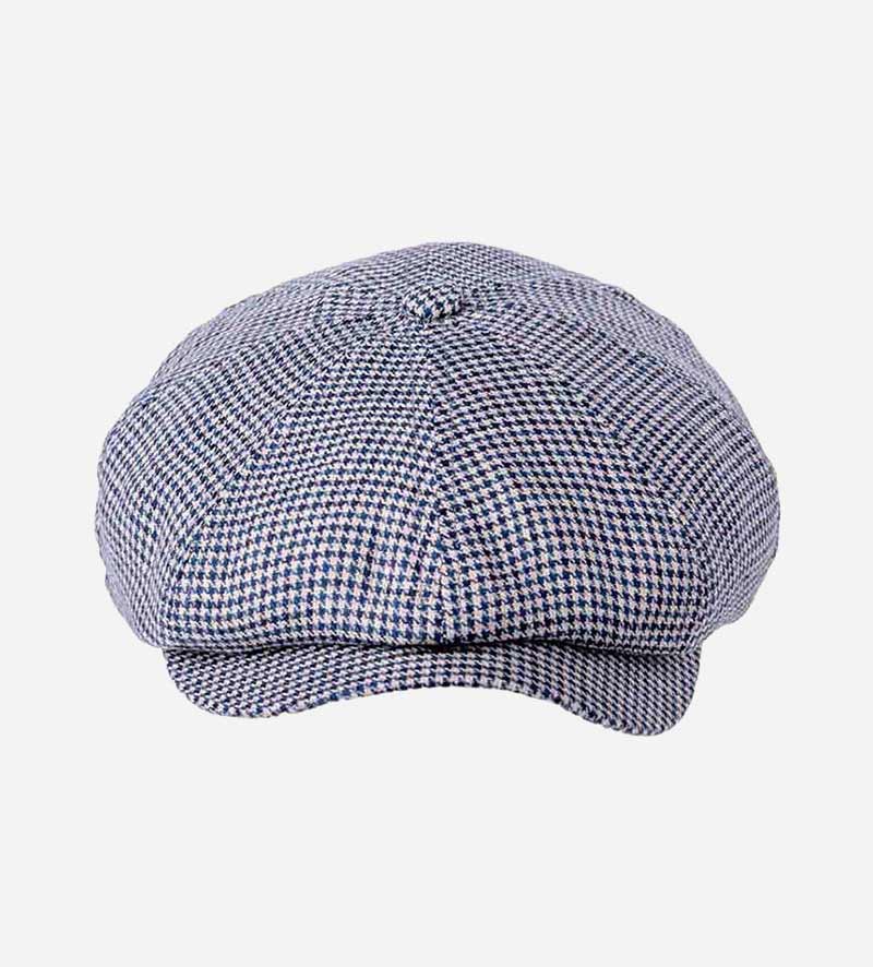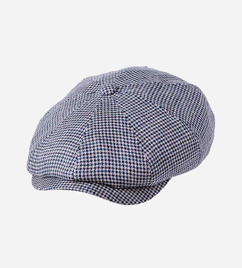 SUKHONA Linen Newsboy Cap Houndstooth Gray-Blue-White