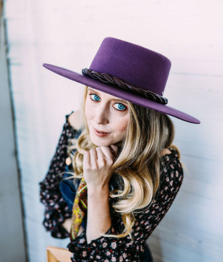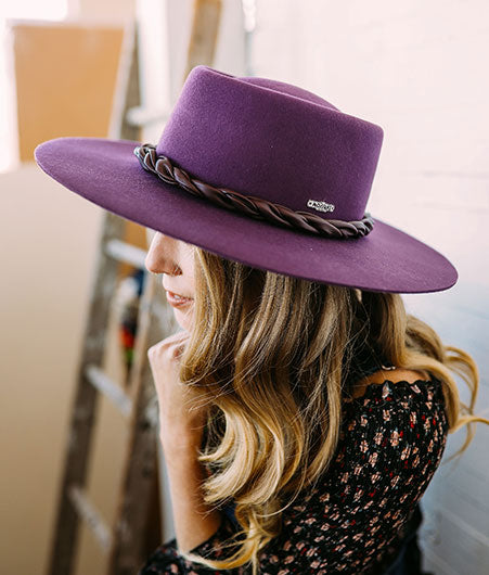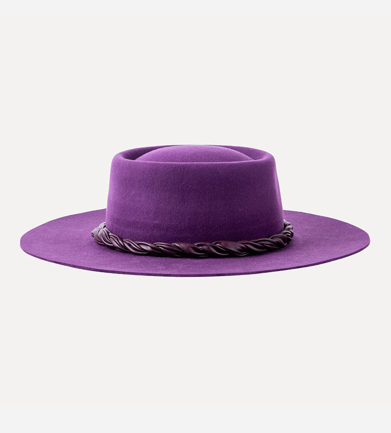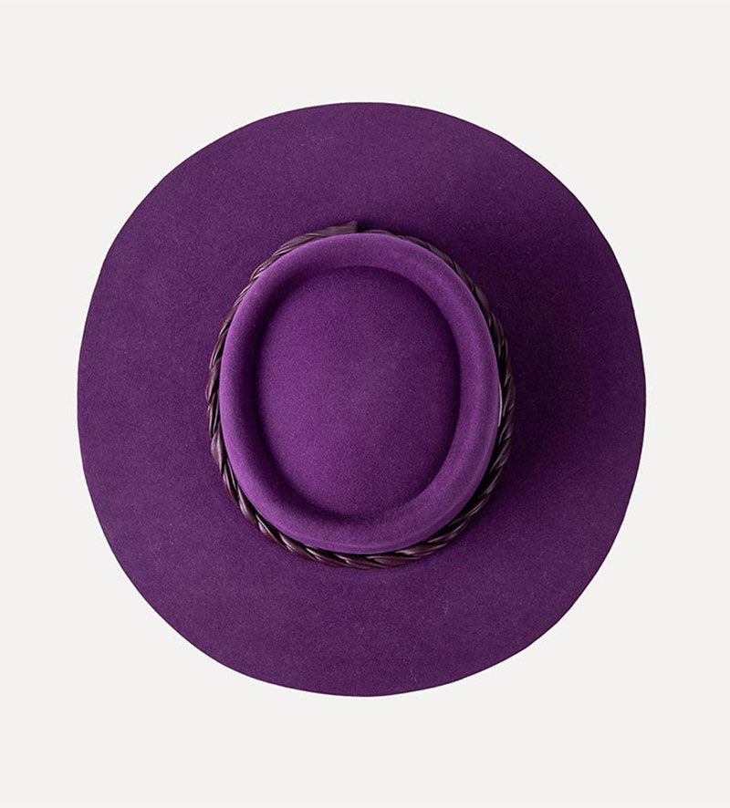 Wide Brim Purple Fedora With Leather Trimming Band